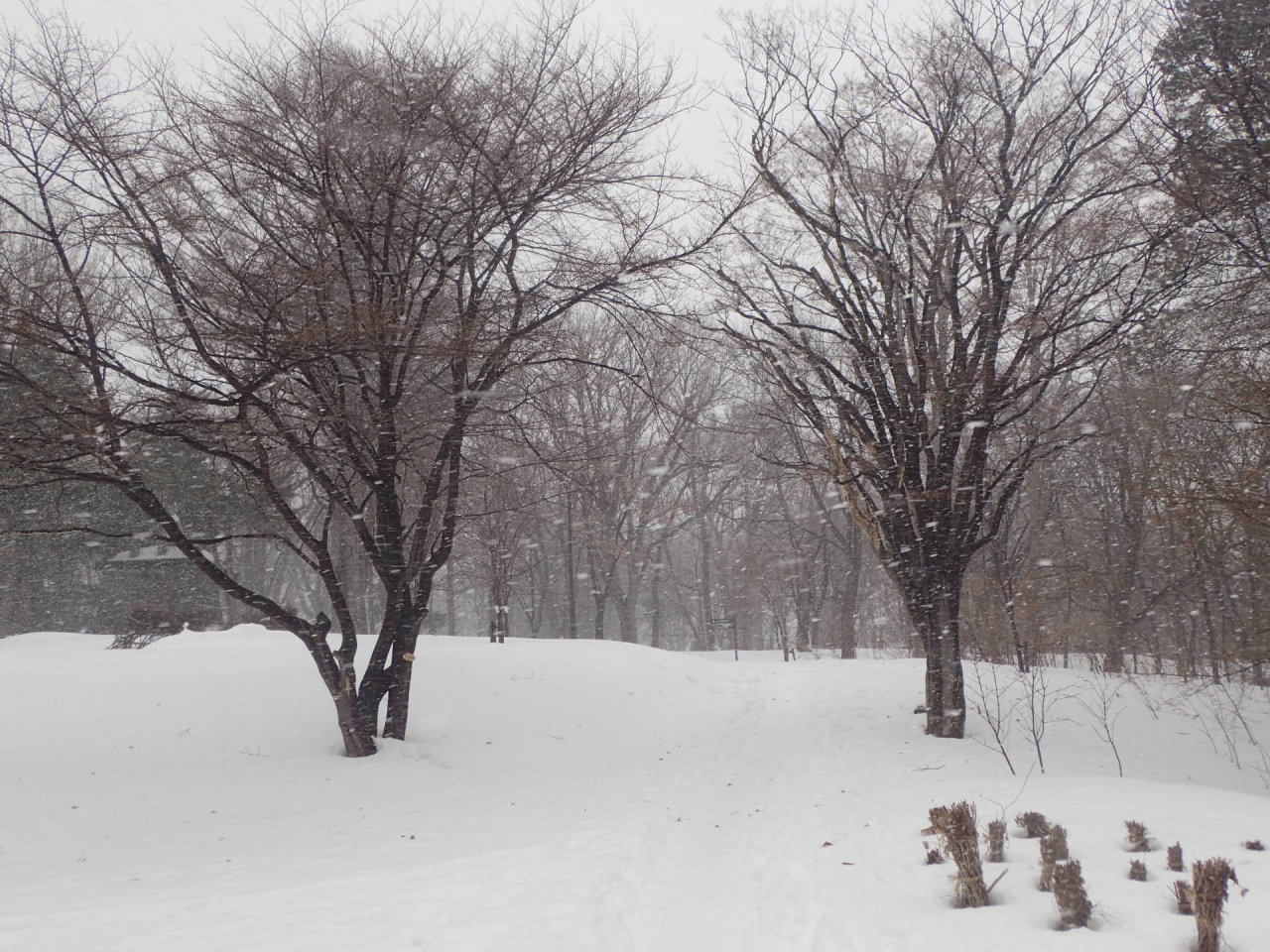 今日の月寒公園は、雨交じりの雪が降り、風も強くなってきています。