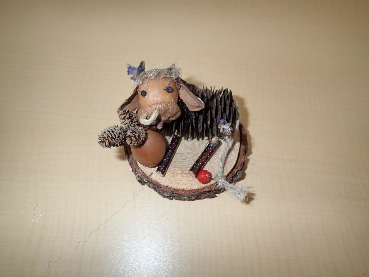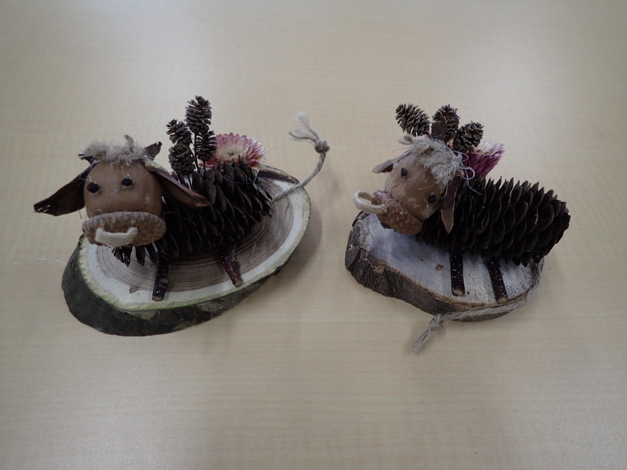 こちらはご兄弟で参加の牛さんです。飾り付けはこだわりのプラタナスの実を体に