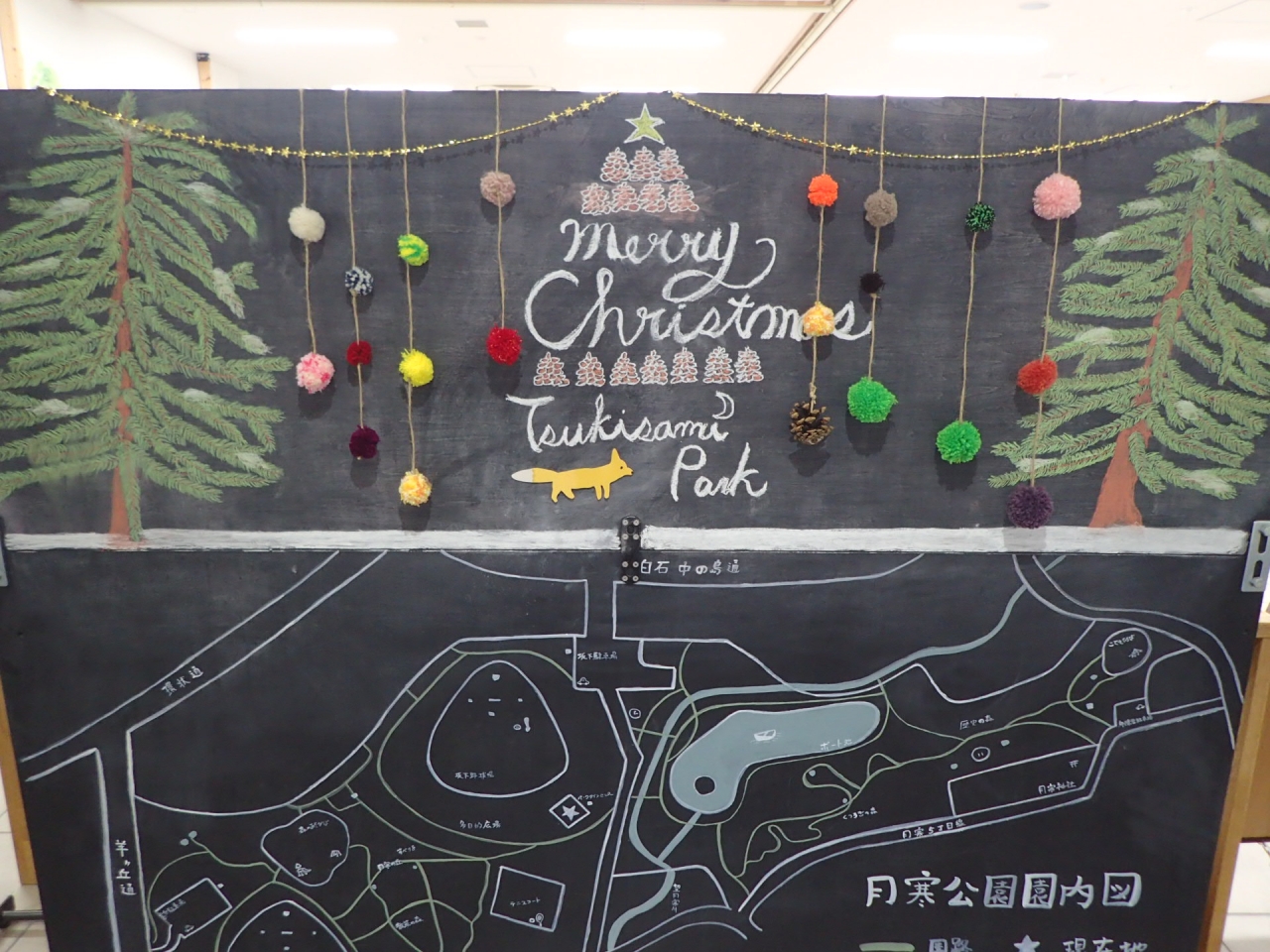 パークライフセンターの館内黒板もクリスマスの装飾にしましたよ~!