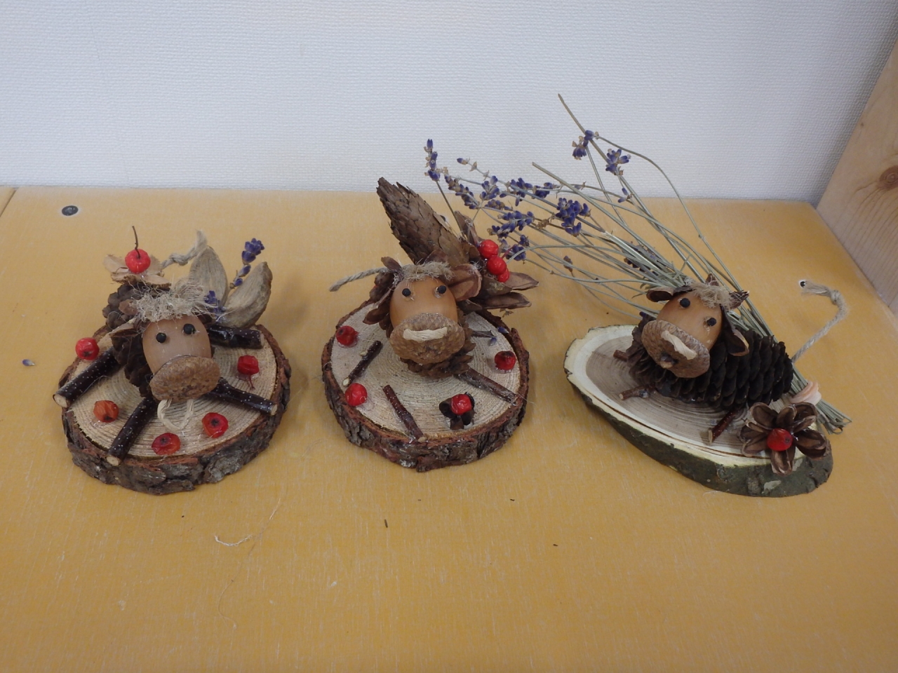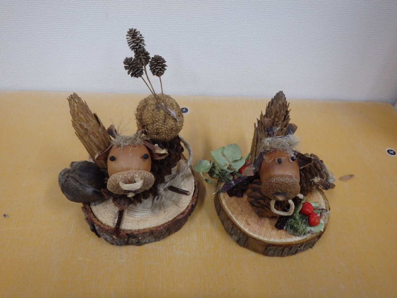 20日(日曜日)は木の実で作る干支のうしのクラフト体験でした。