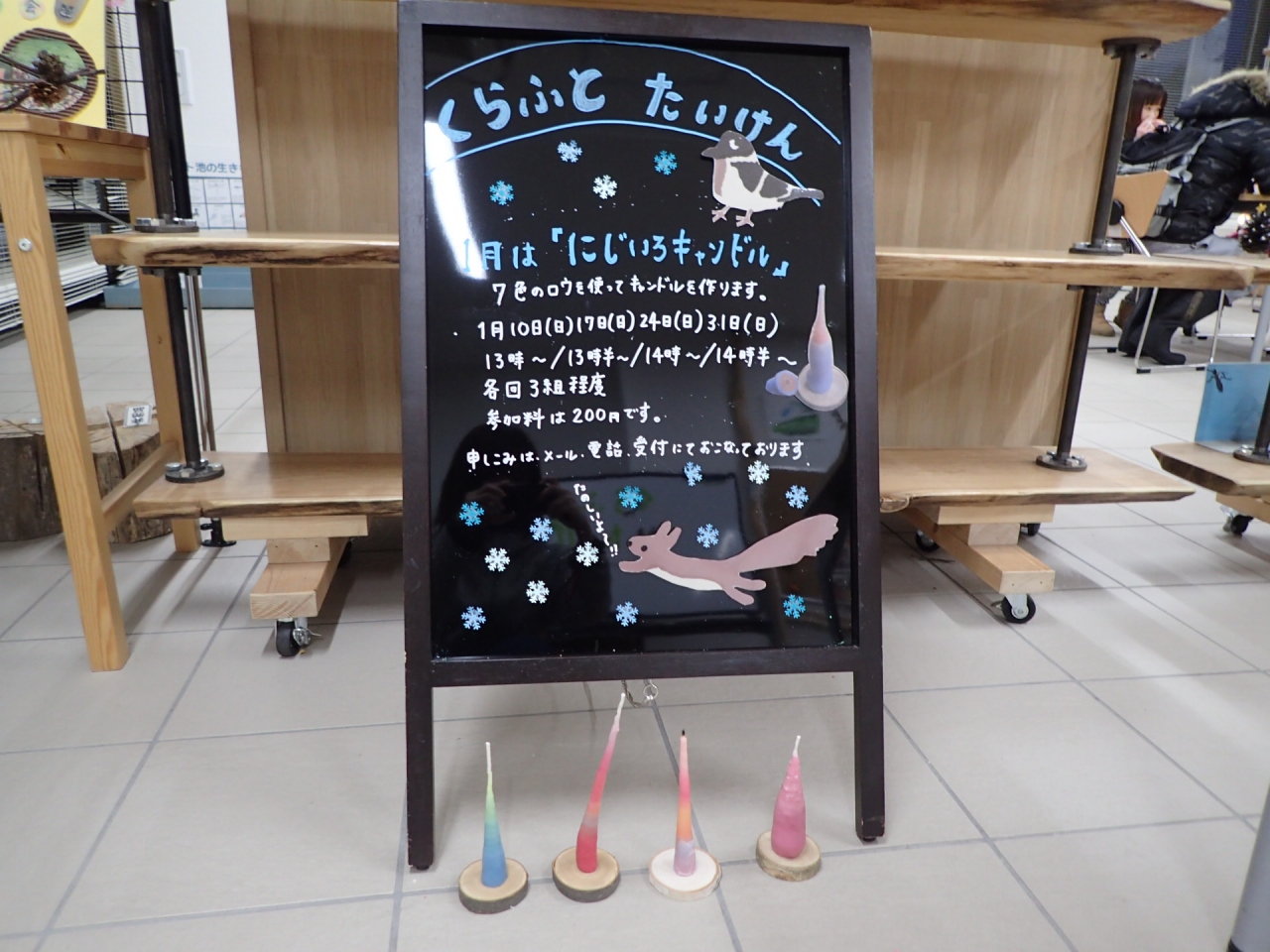 次回のくらふとたいけん「にじいろキャンドル」は1月31日日曜日です。