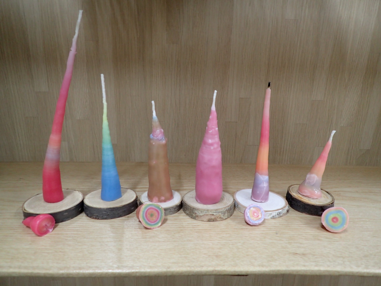 7色のロウを使って作るオリジナルキャンドル。皆さんの作品のご紹介です。