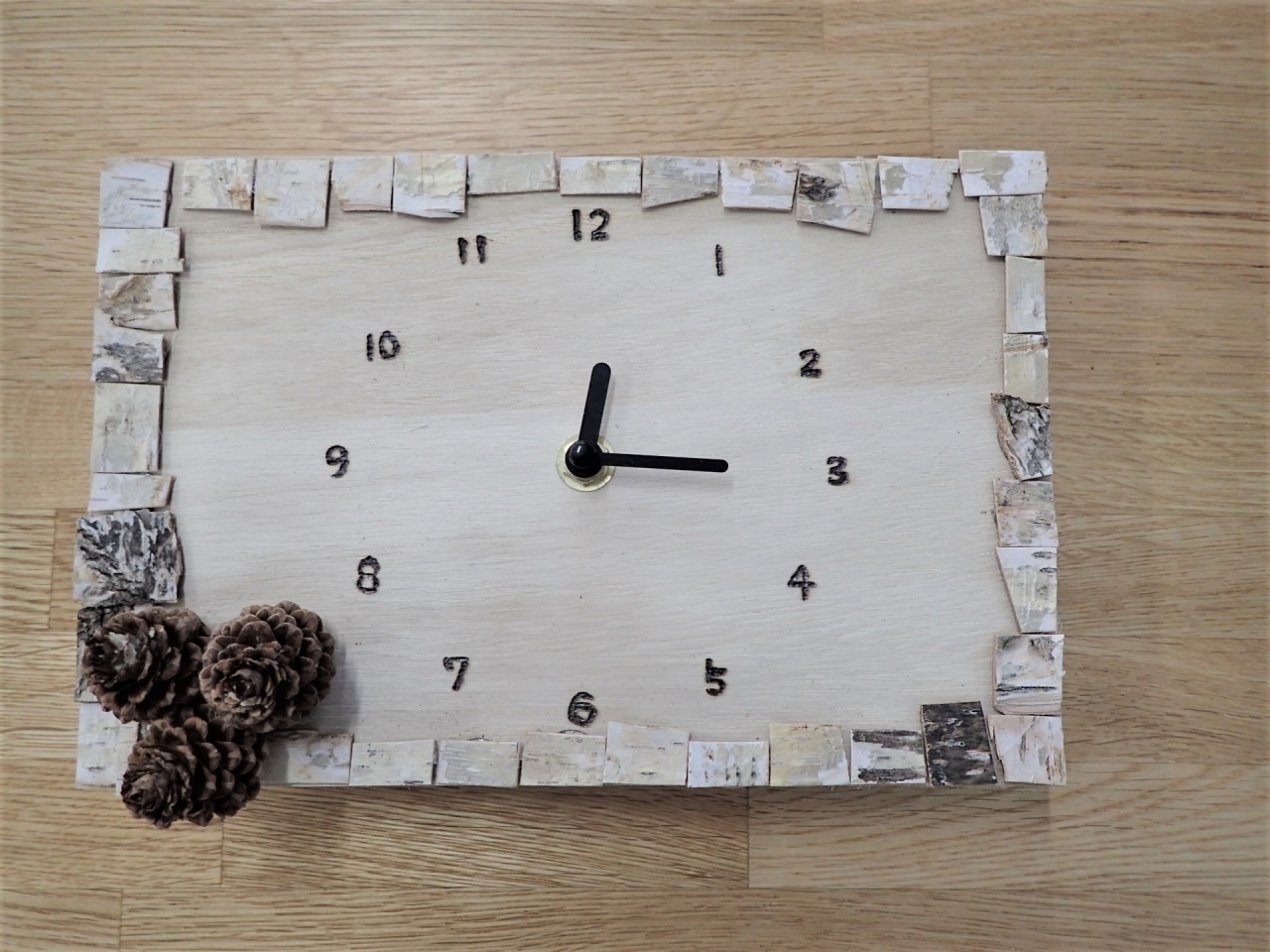 2月は「木の実でつくる時計」です。ウッドバーニングという木を焼きつけながら