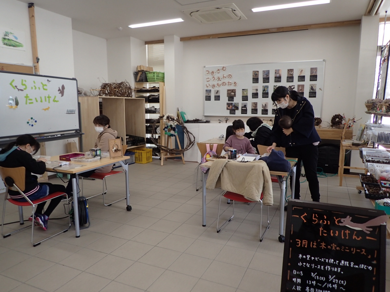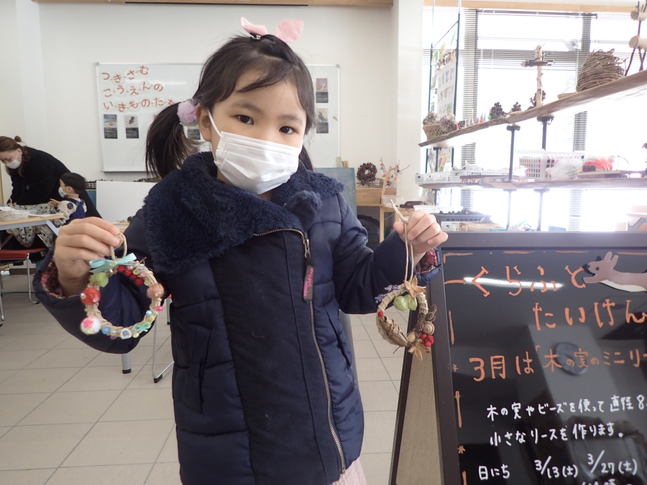 3月27日(土曜日)はくらふとたいけん「木の実のミニリース」の最終日でした。