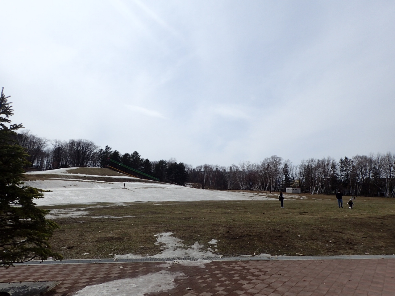 公園は雪解けが進み、多目的広場も芝生がみえてきました。乾いてる部分もありますが