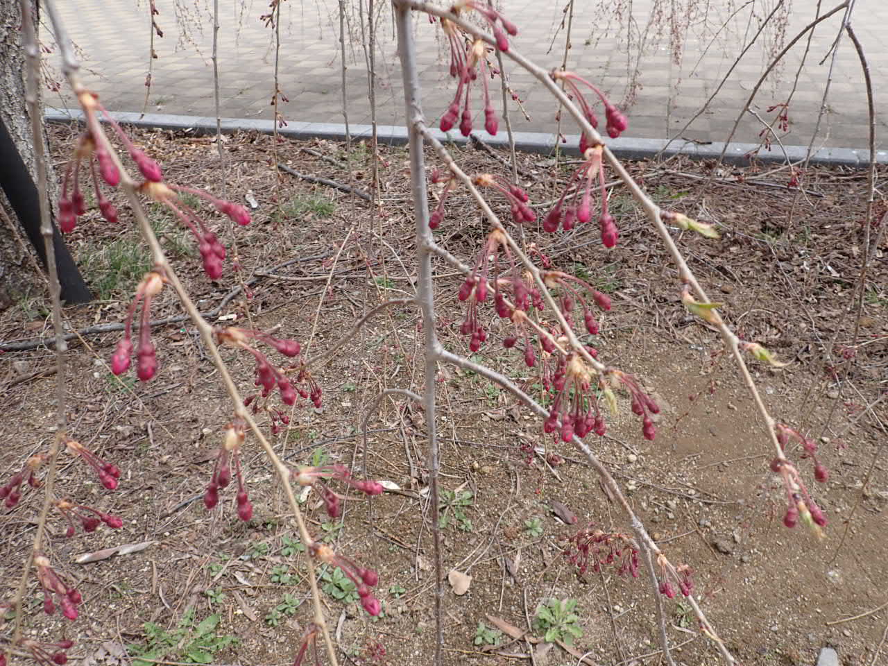 シダレザクラはまだ蕾ですね~。今日のお天気で開花が進むかもしれません。