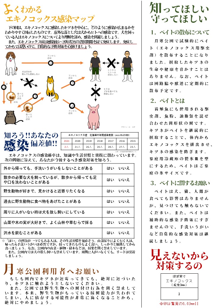 キツネの生態やエキノコックス症についても書かれていますので、ぜひ皆さんの身近な自然に対する正しい知識を得ていただければと思います。