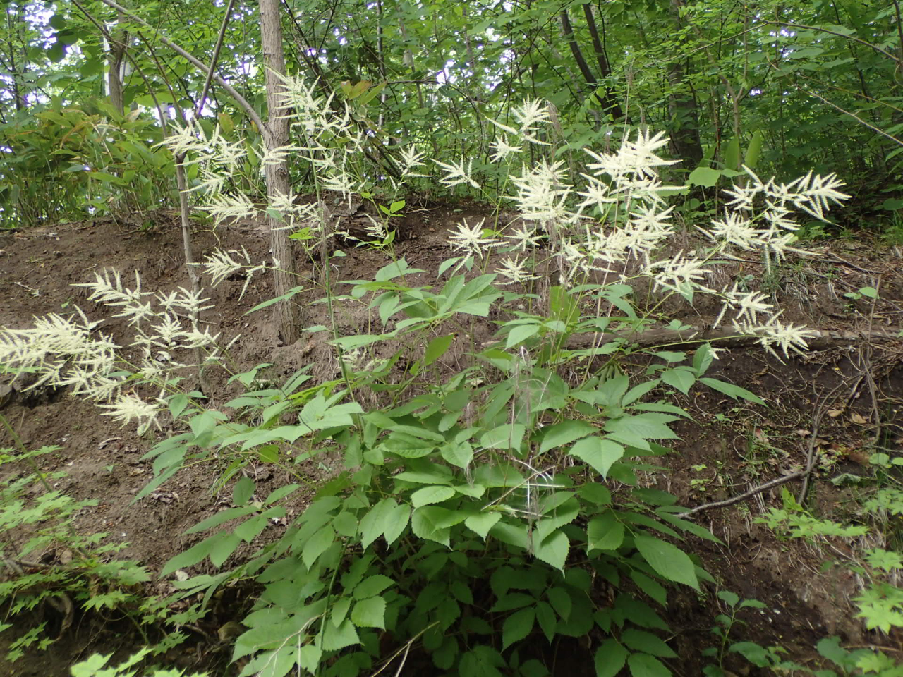 月寒神社に上がる階段沿いには、「ヤマブキショウマ」が咲き始めました。