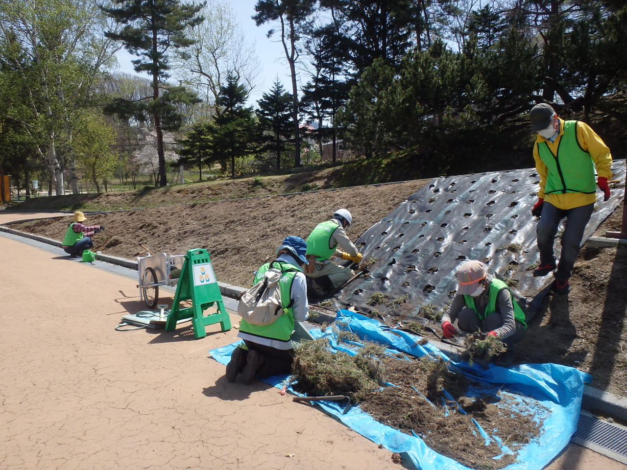 5月の移植作業の写真です。斜面があるため作業も大変です。