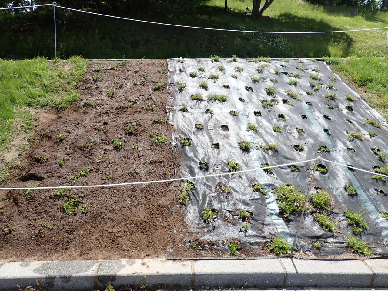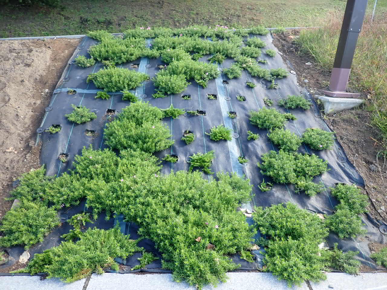 2020年10月に防草シートをひき、シバザクラを植え直しました。