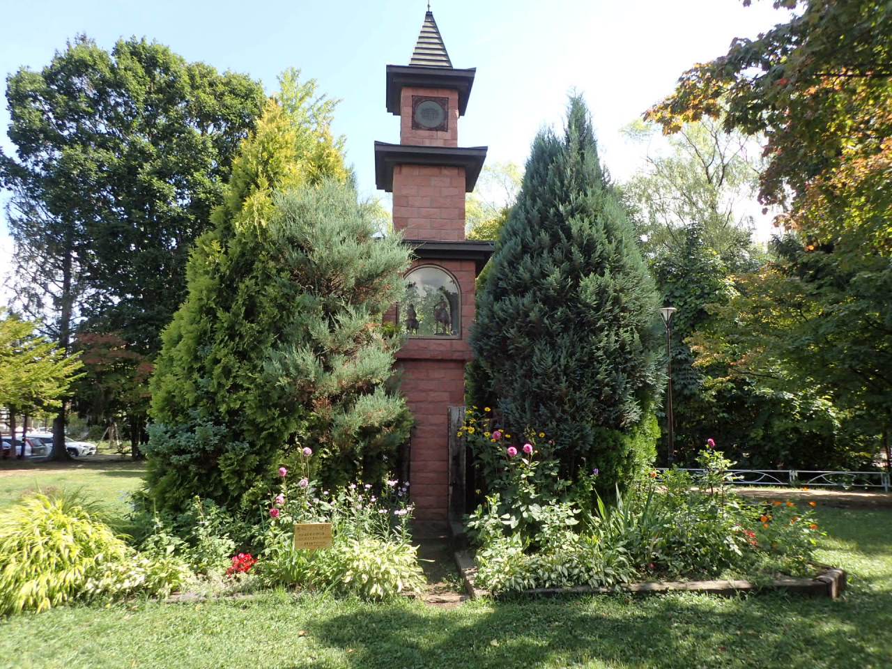 時計塔花壇は坂下駐車場からすぐ近くにあり、「エーデルワイス」のオルゴールが流れます。
