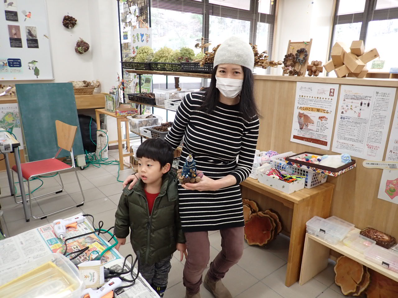 どんぐりで作った雪だるまや、きれいに色づけた木の実。