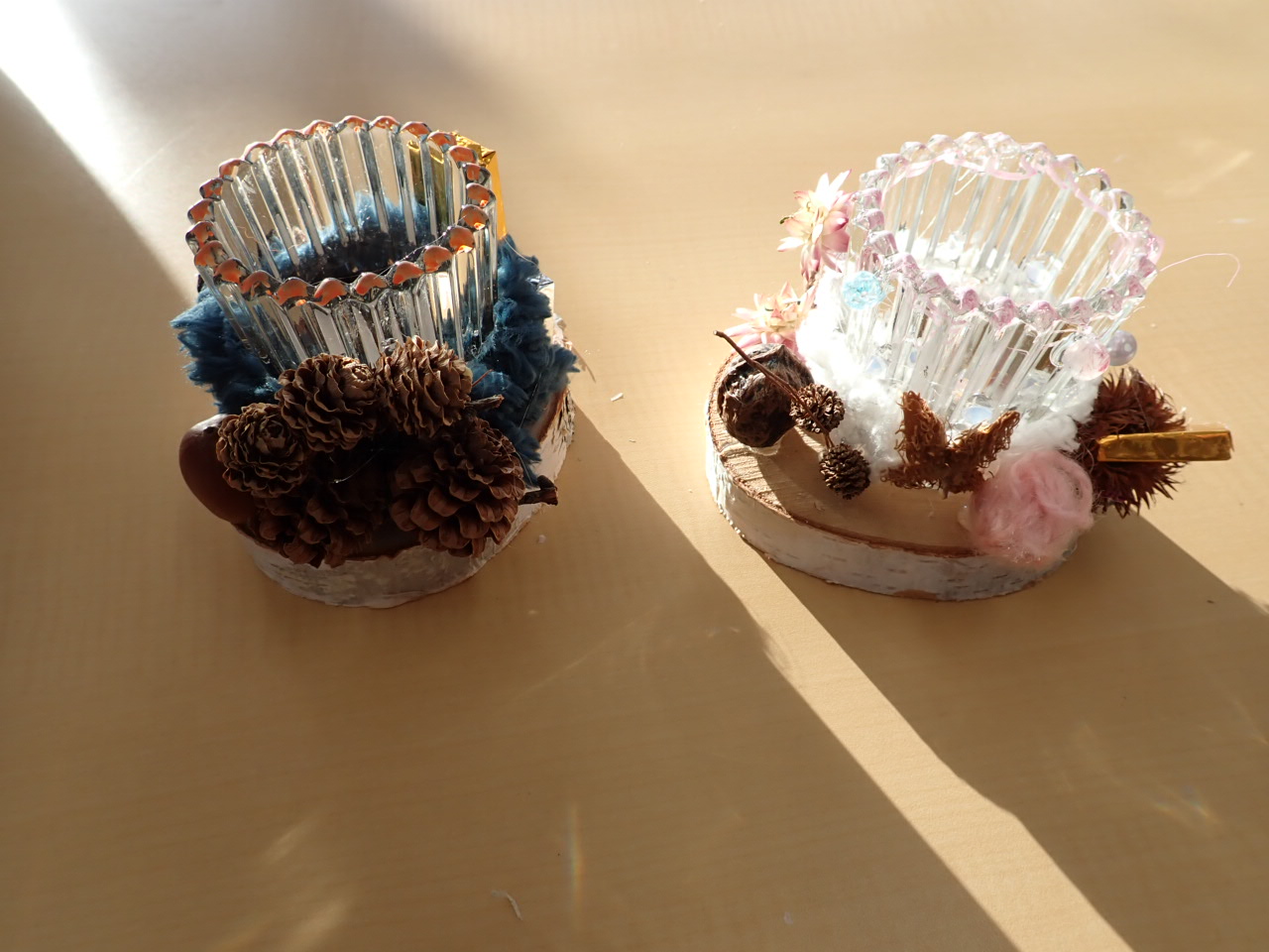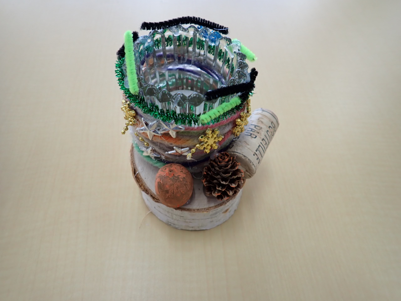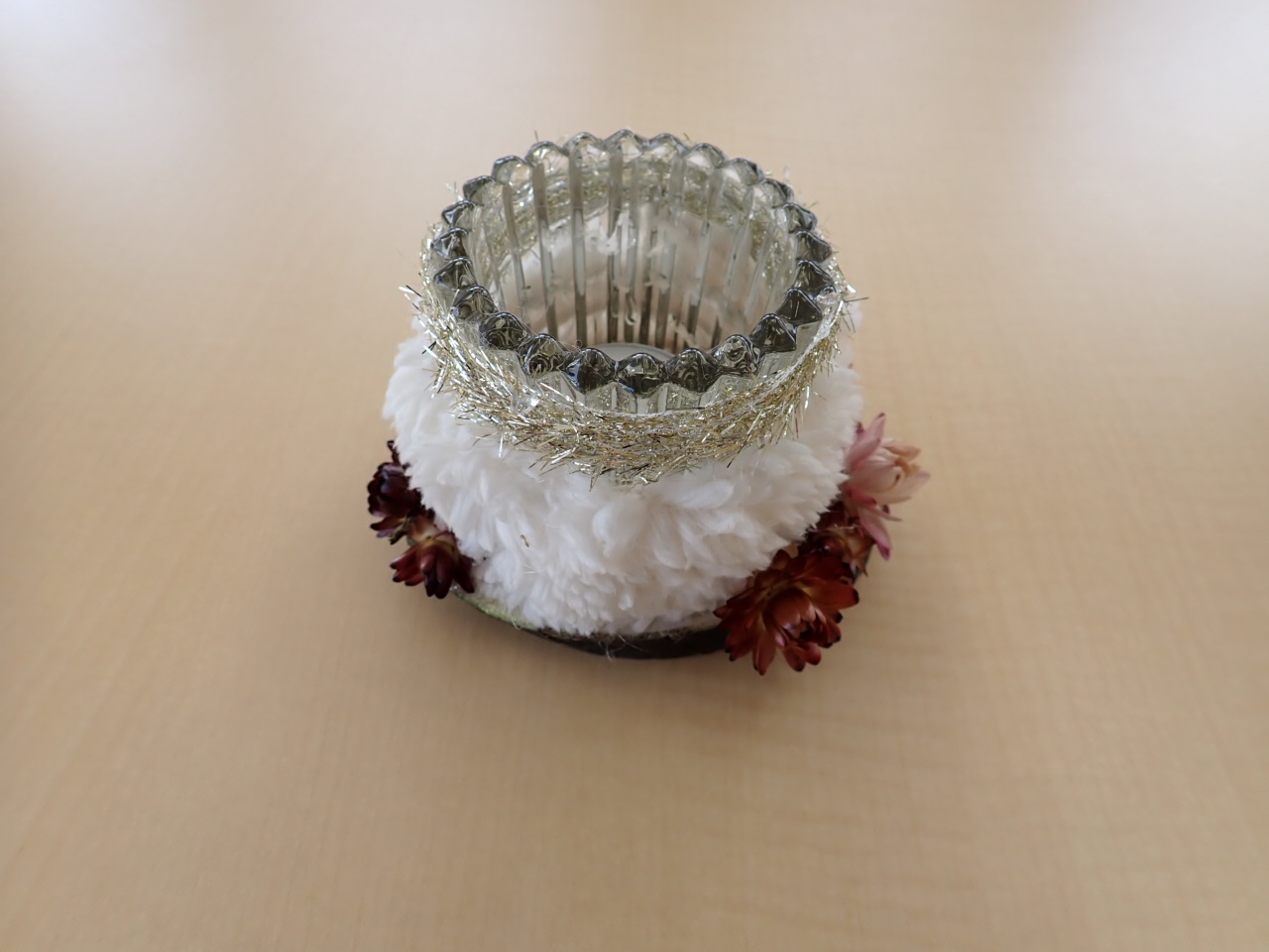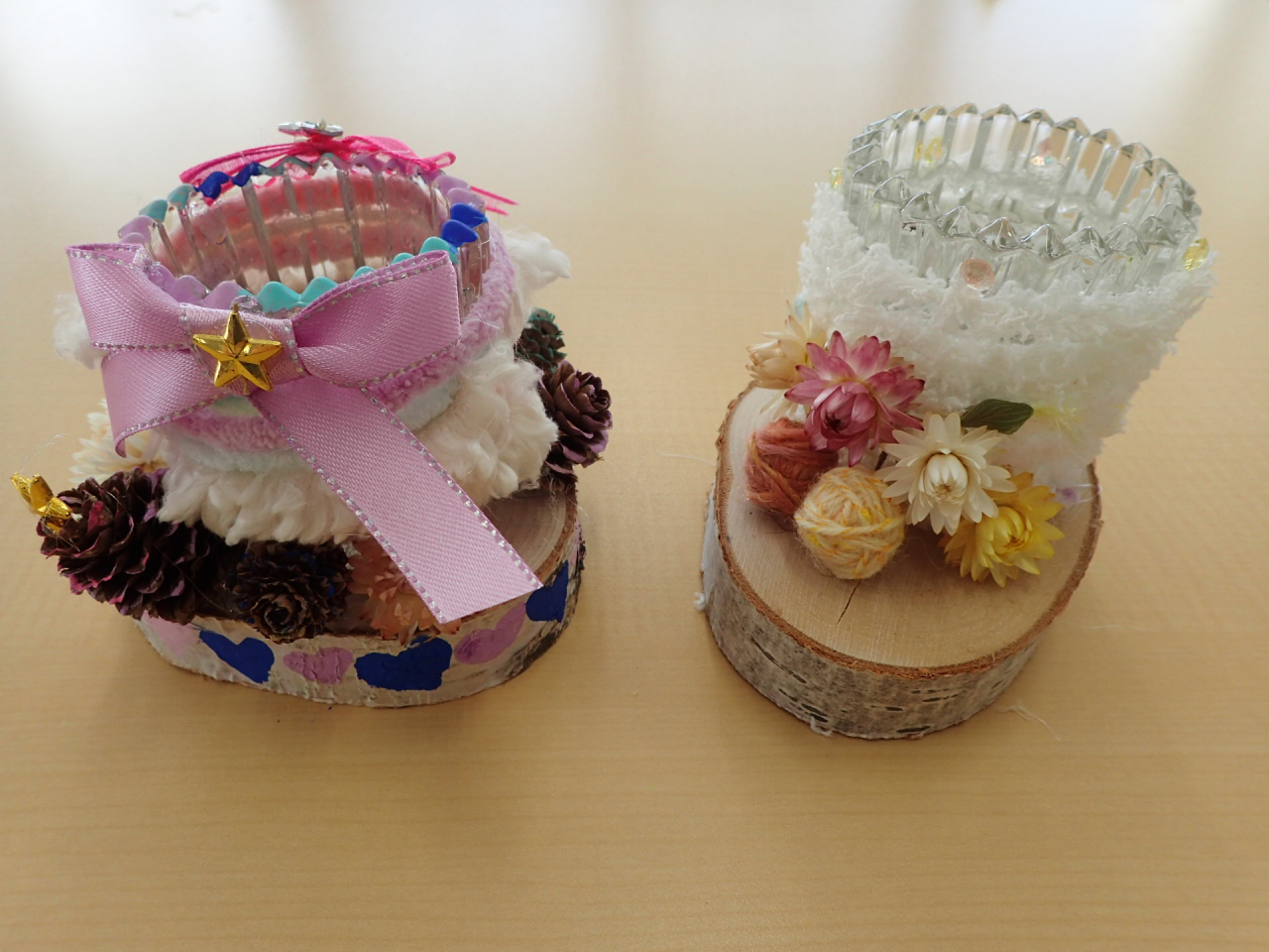 過ごしました。リボンをクルクルしながら貼っていったり、巻きつける毛糸を変えていったり