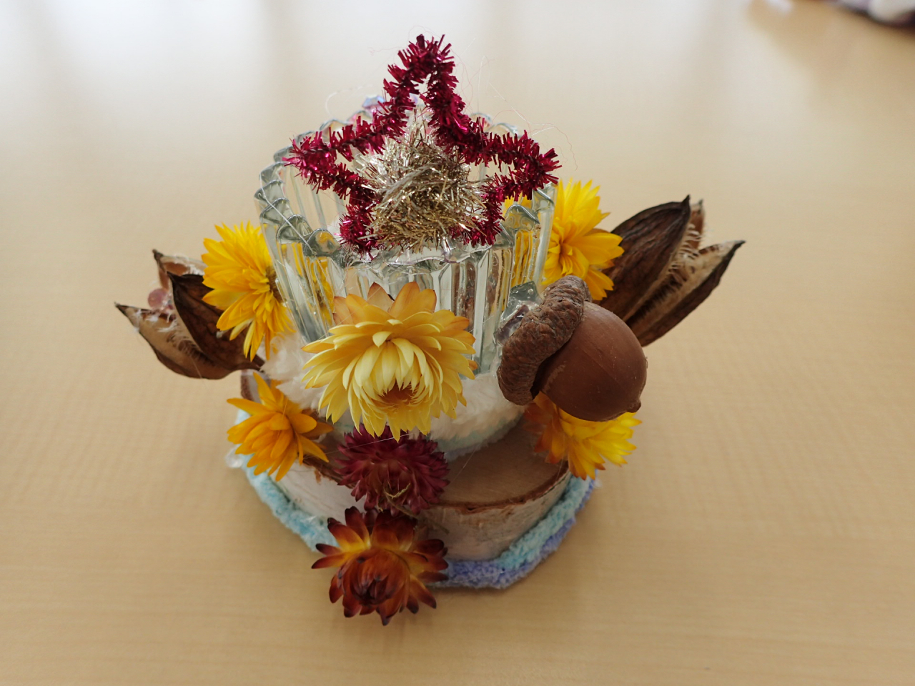 今日はくらふとたいけん「木の実のキャンドル」の開催日でした。みなさんの作品と