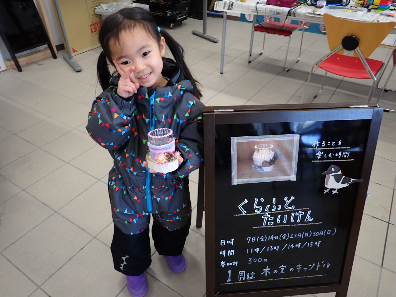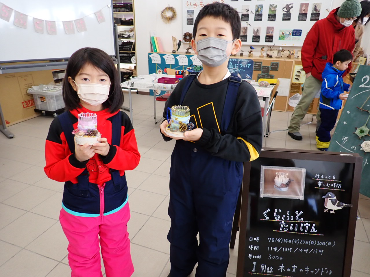 今日はくらふとたいけん「木の実のキャンドル」の最終日でした。