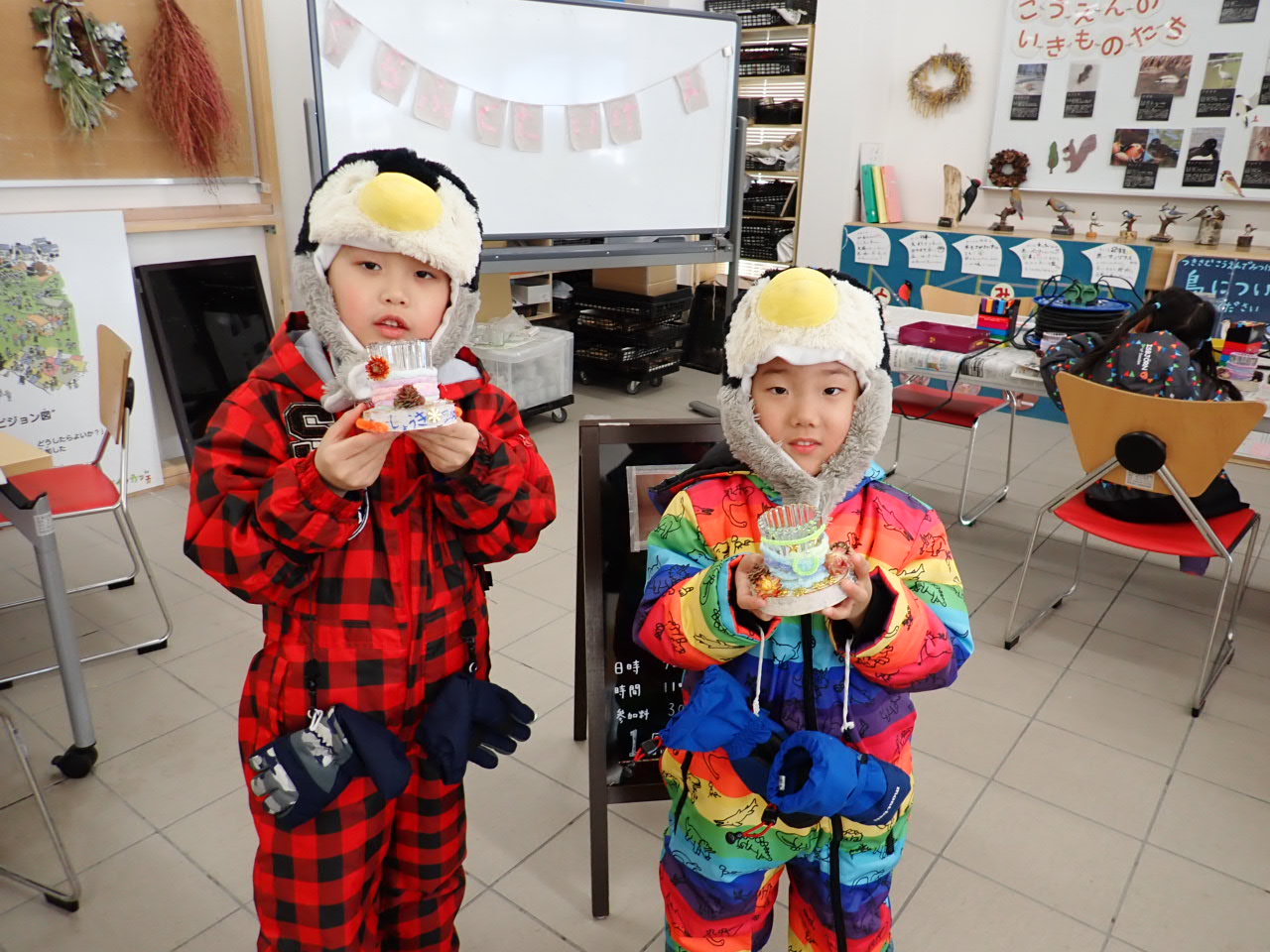 節分の前日なので、鬼のお面を作ったり、パークライフセンター前で雪あそびをして、
