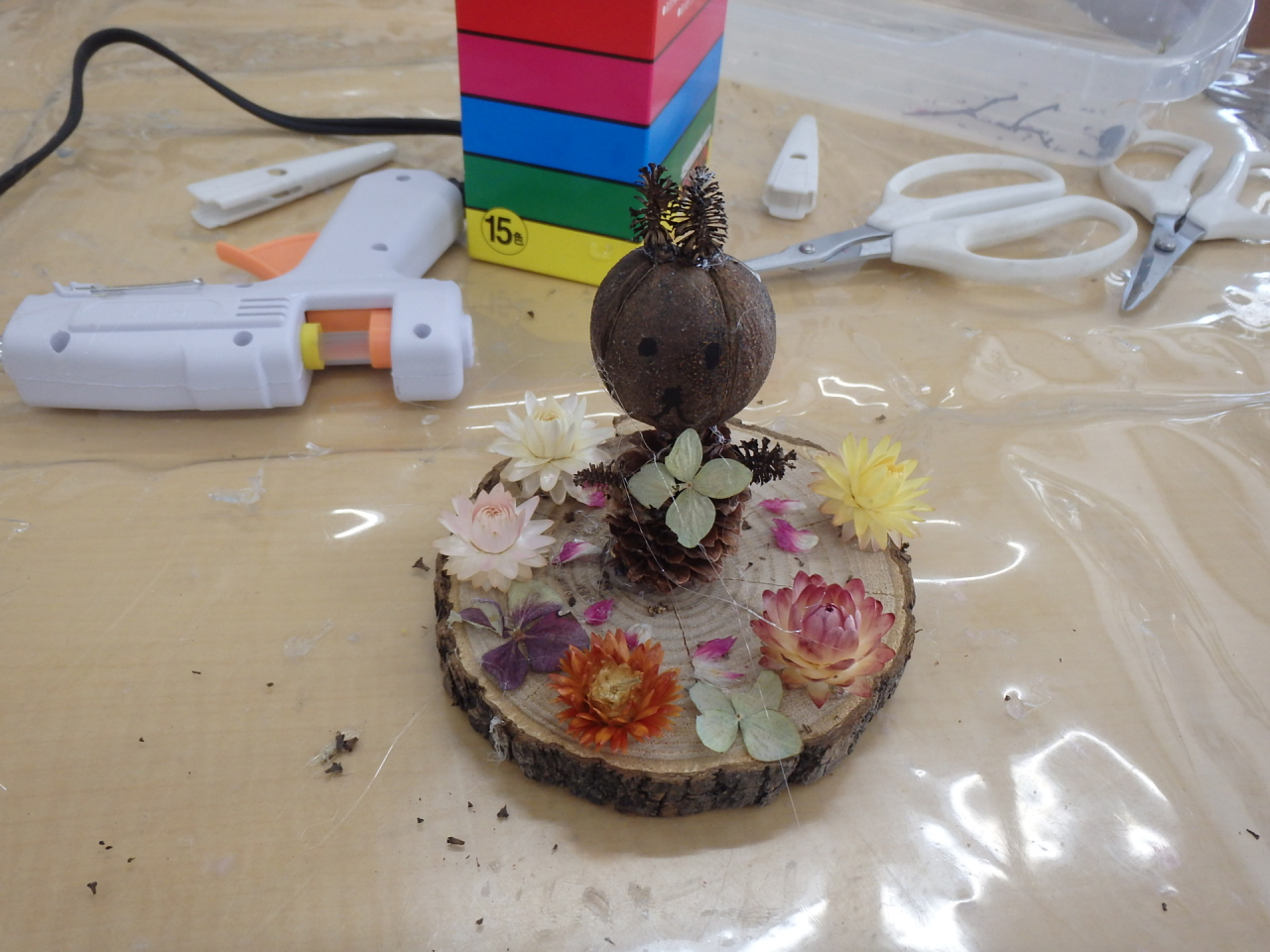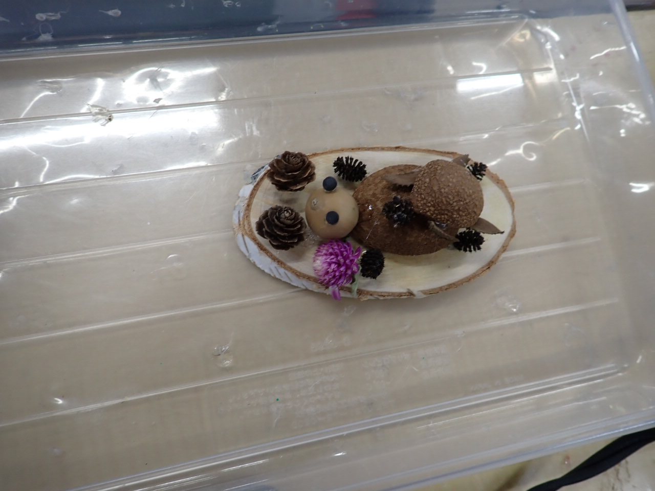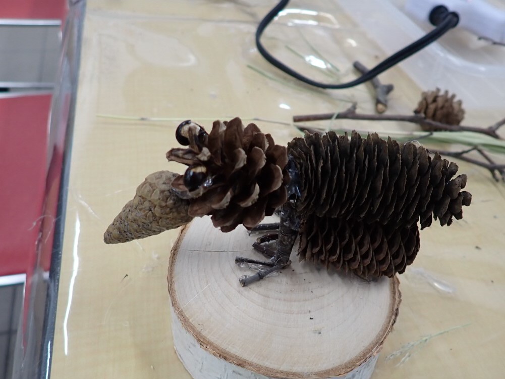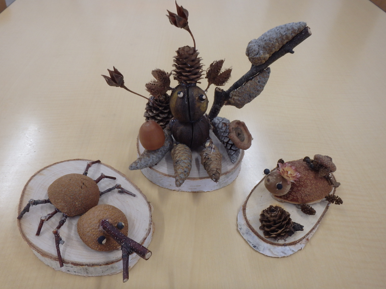 みなさん木の実でスイスイと製作。可愛らしい部分、リアルな部分をまじえながら