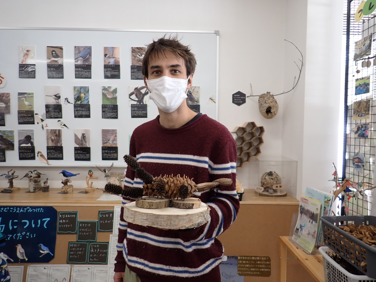 キツネや犬、カブトムシ、まるで華道のようにお花をいけてみたり、ウサギも…。口は?耳は?身体は?どの木の実作ろうかな?