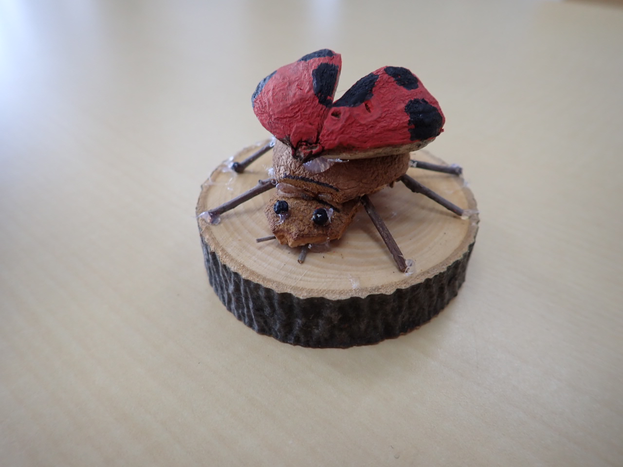 トチの実とヒッコリーでテントウムシ。上手ですね!