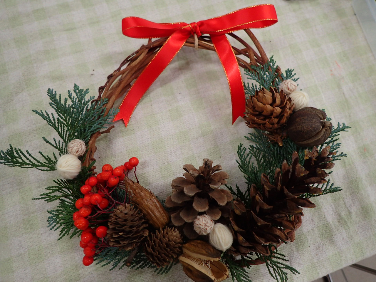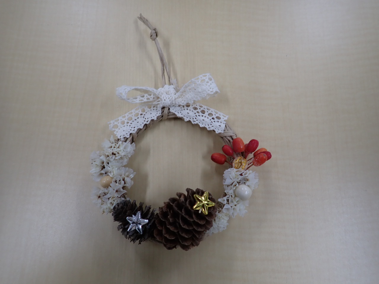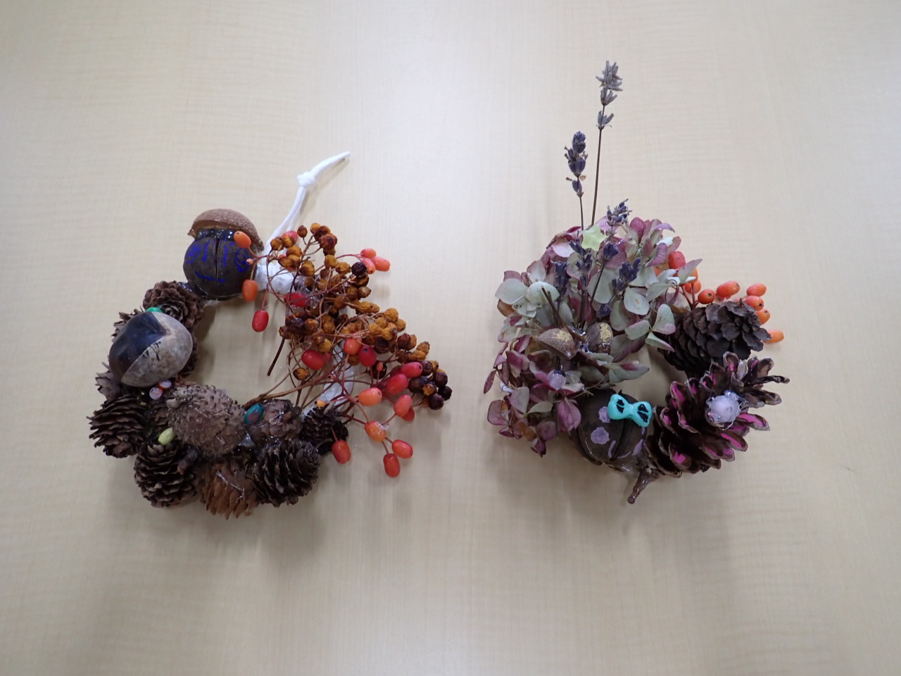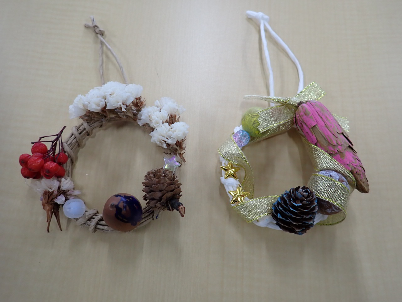 飾り付けをしました。クリスマスリースやナチュラルリース、みなさんの作品のご紹介です。