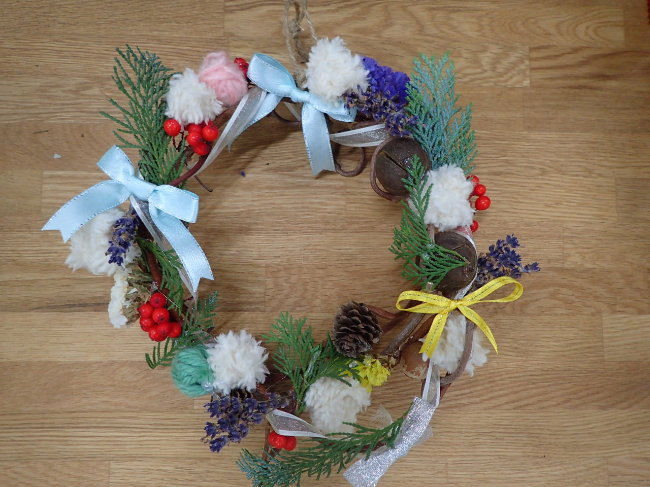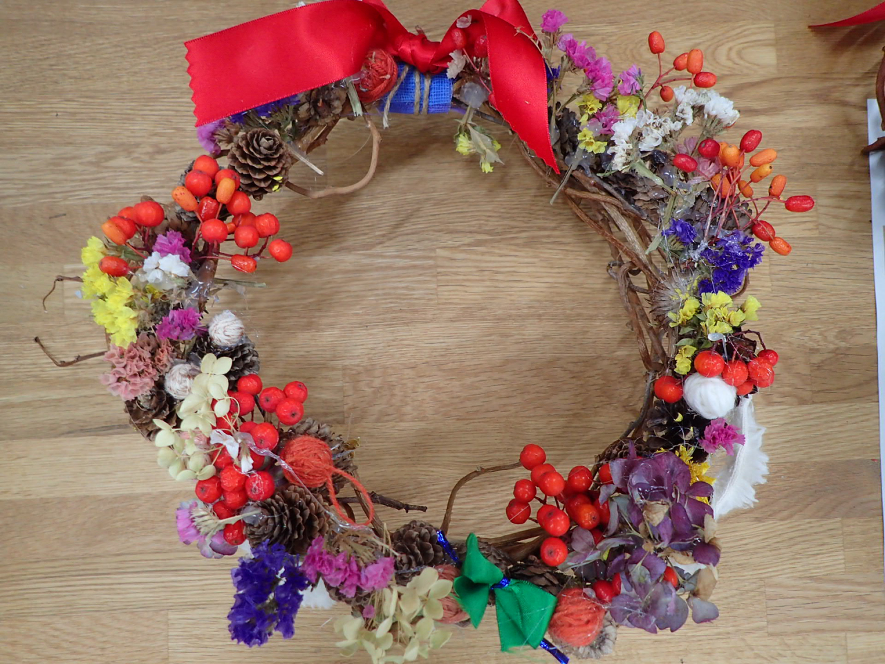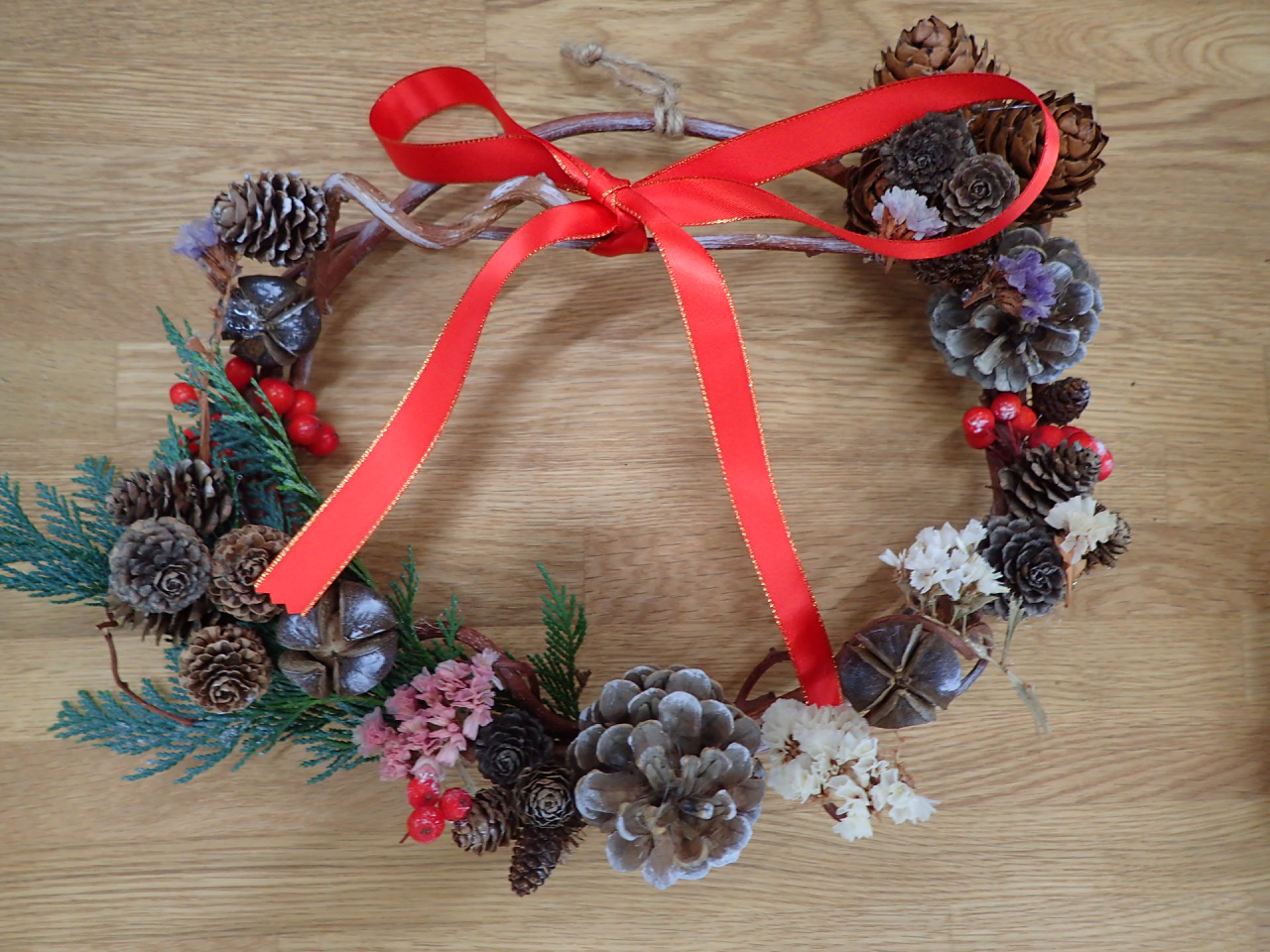 飾り付けをしました。クリスマスリースやナチュラルリース、みなさんの作品のご紹介です。
