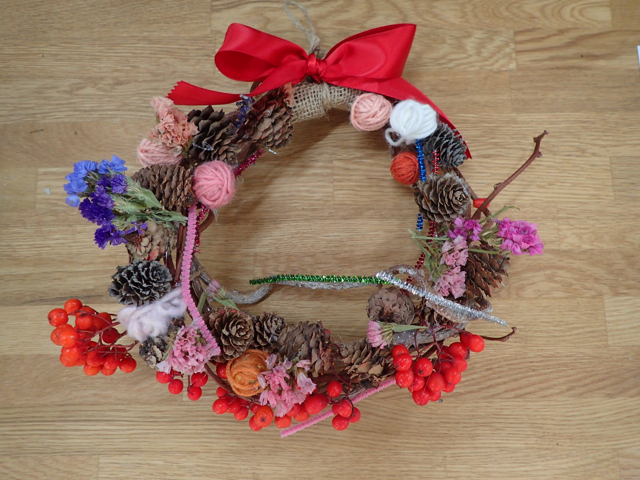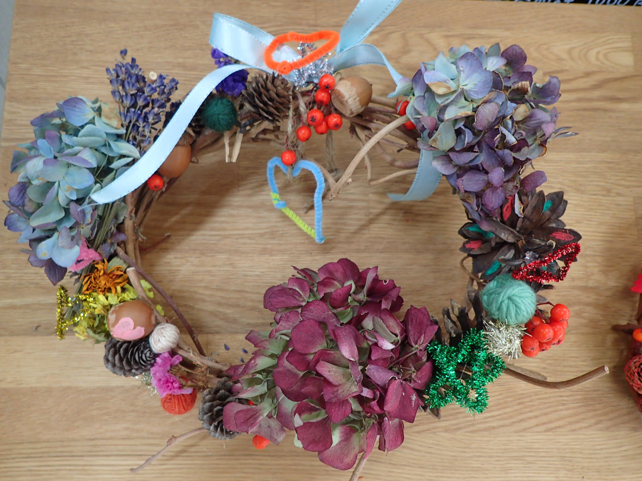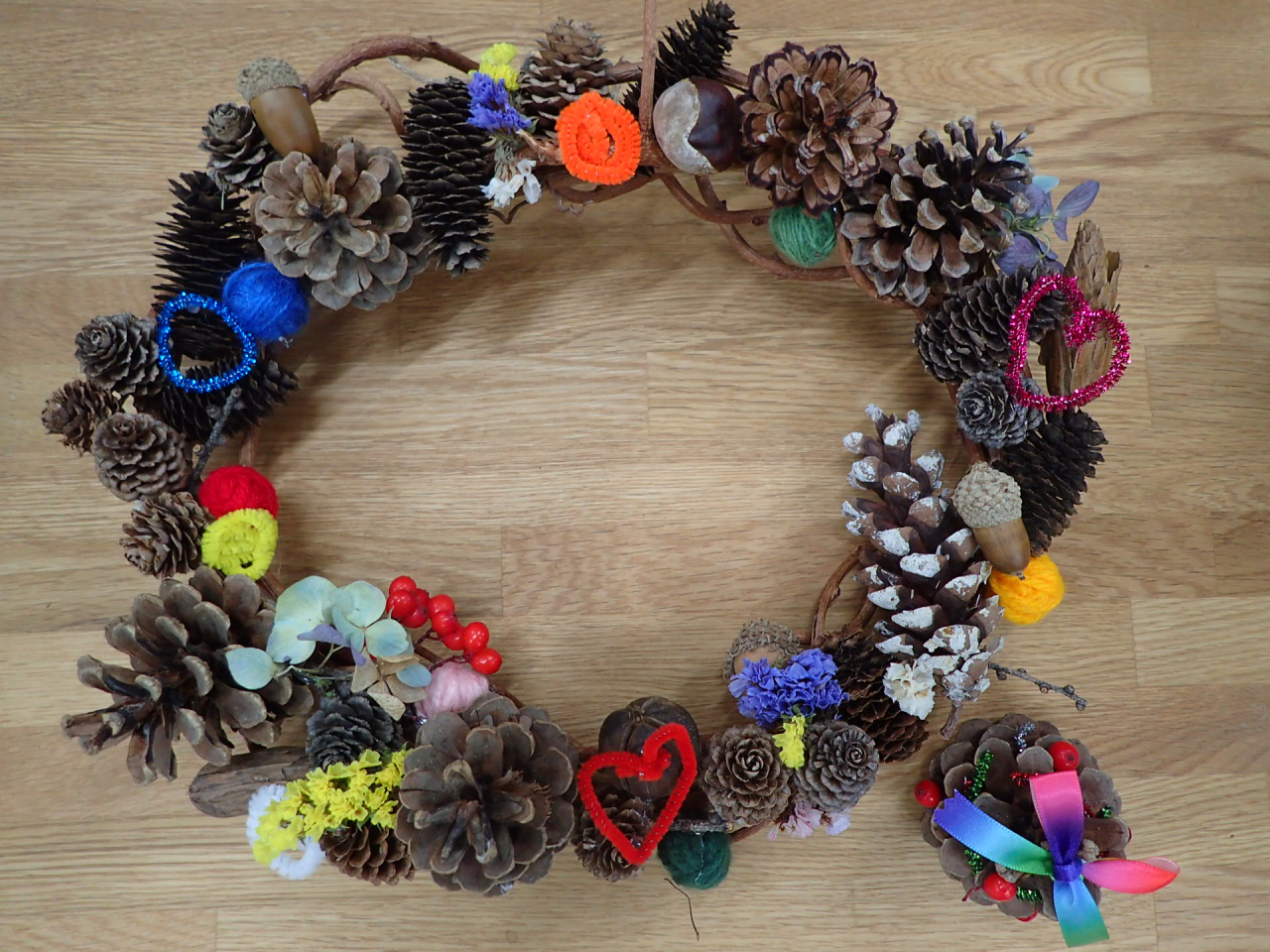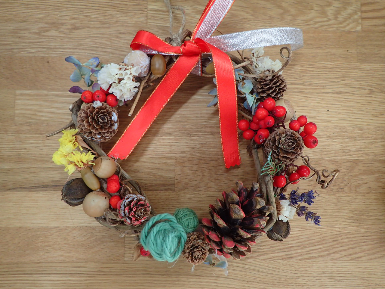 飾り付けをしました。クリスマスリースやナチュラルリース、みなさんの作品のご紹介です。