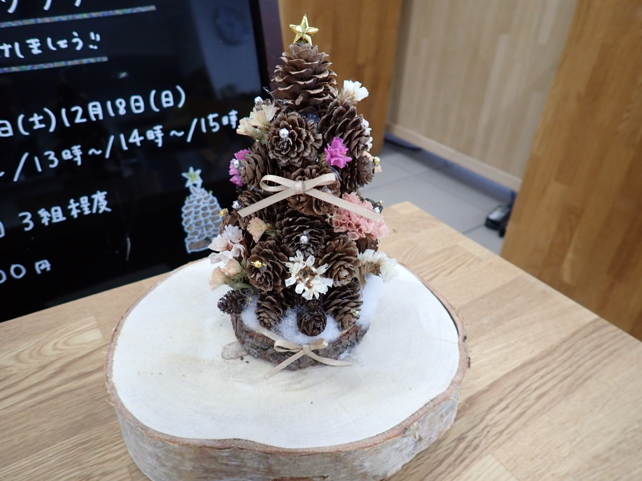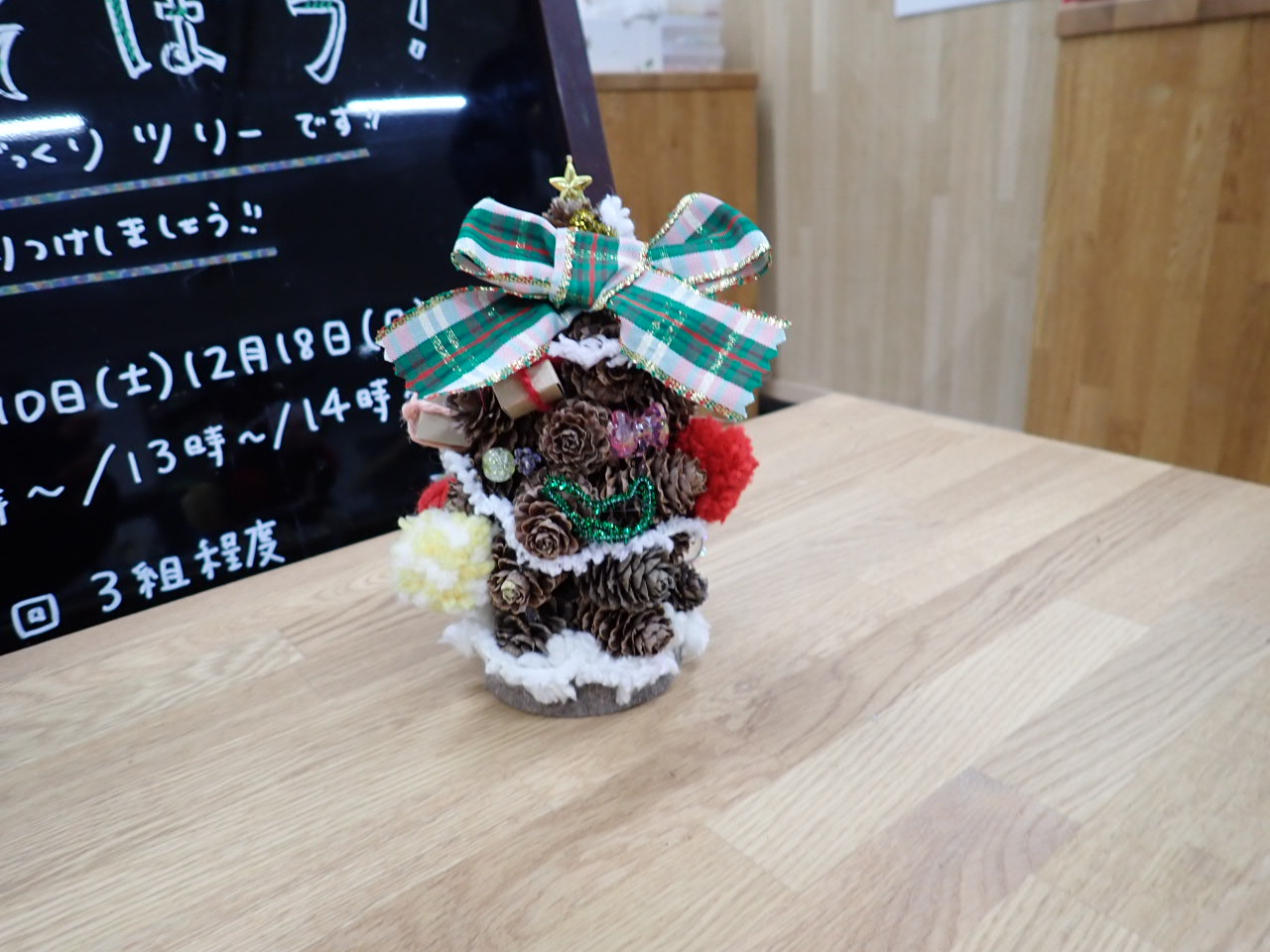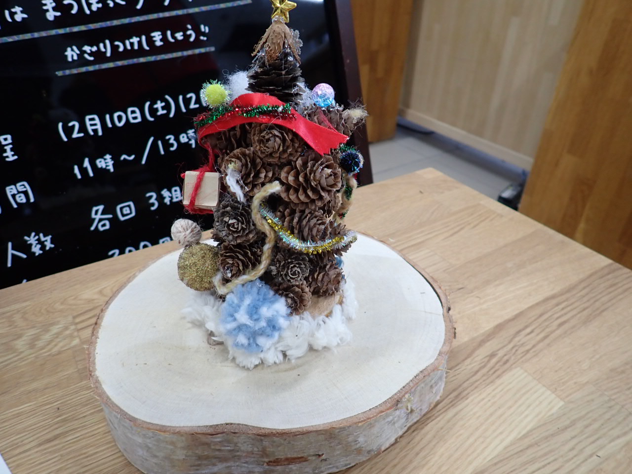 カラマツのまつぼっくりを積み上げるツリーもとても可愛いので、ぜひ作りにきてくださいね。