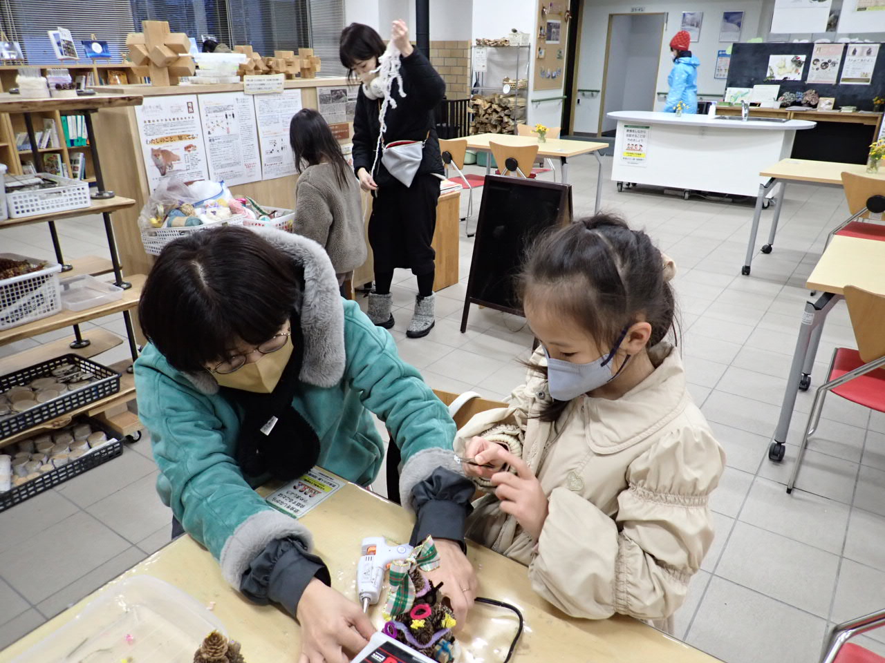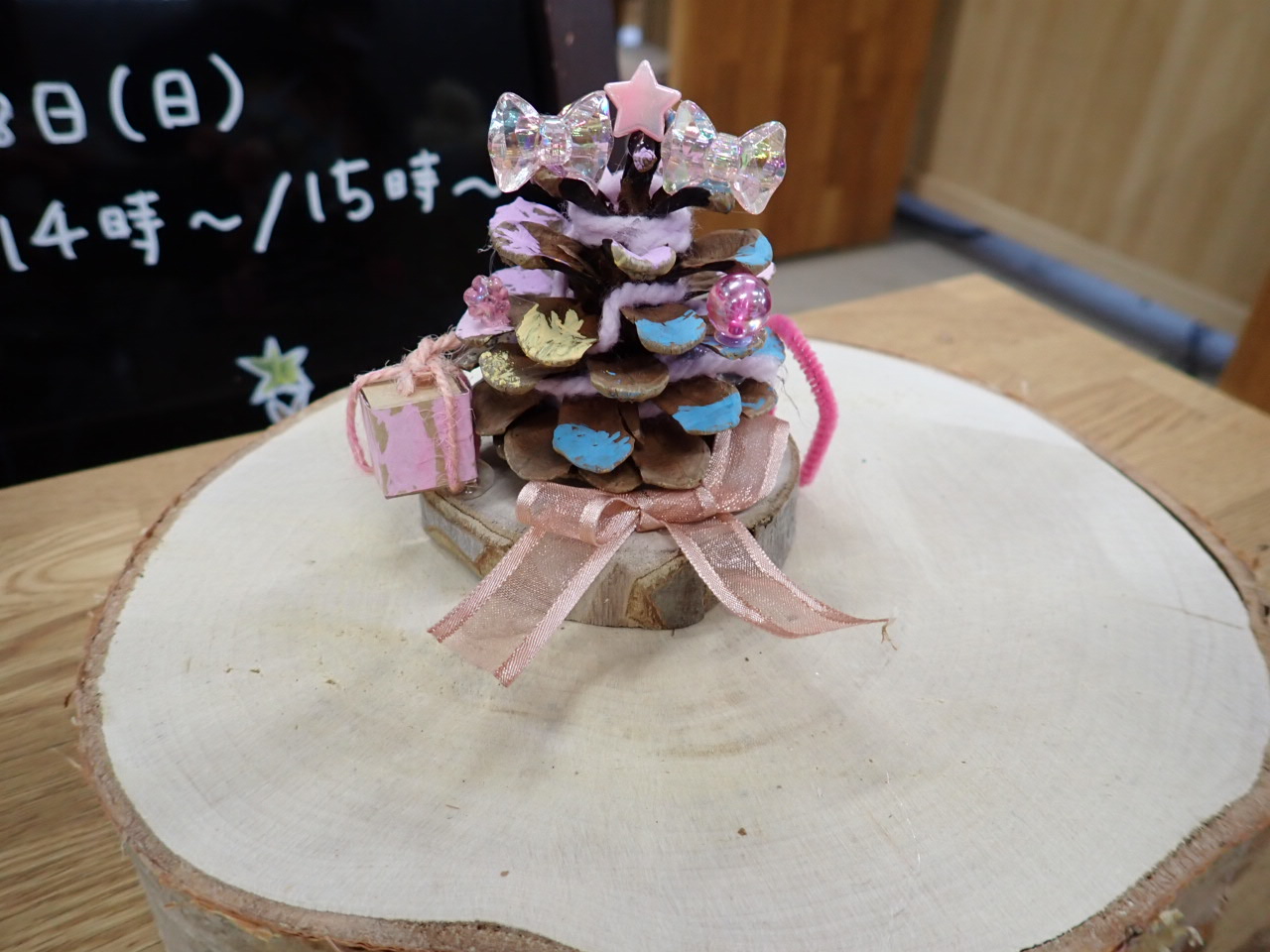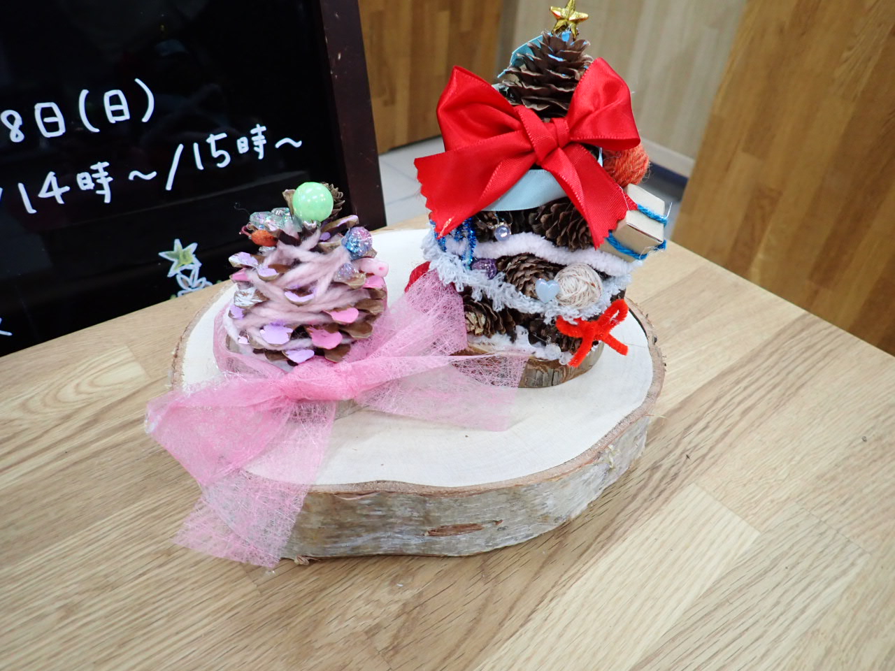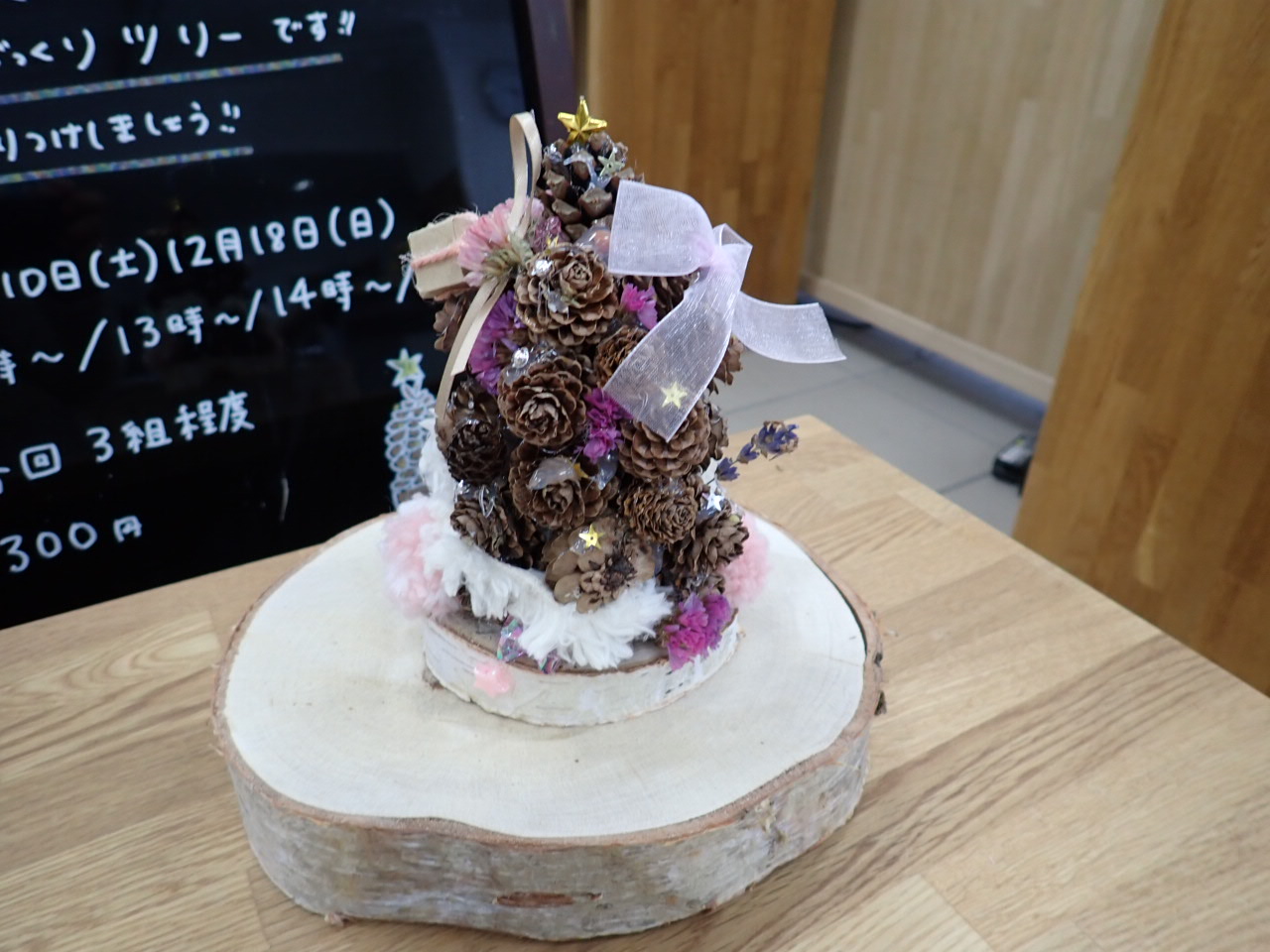 カラマツのまつぼっくりを積み上げるツリーもとても可愛いので、ぜひ作りにきてくださいね。