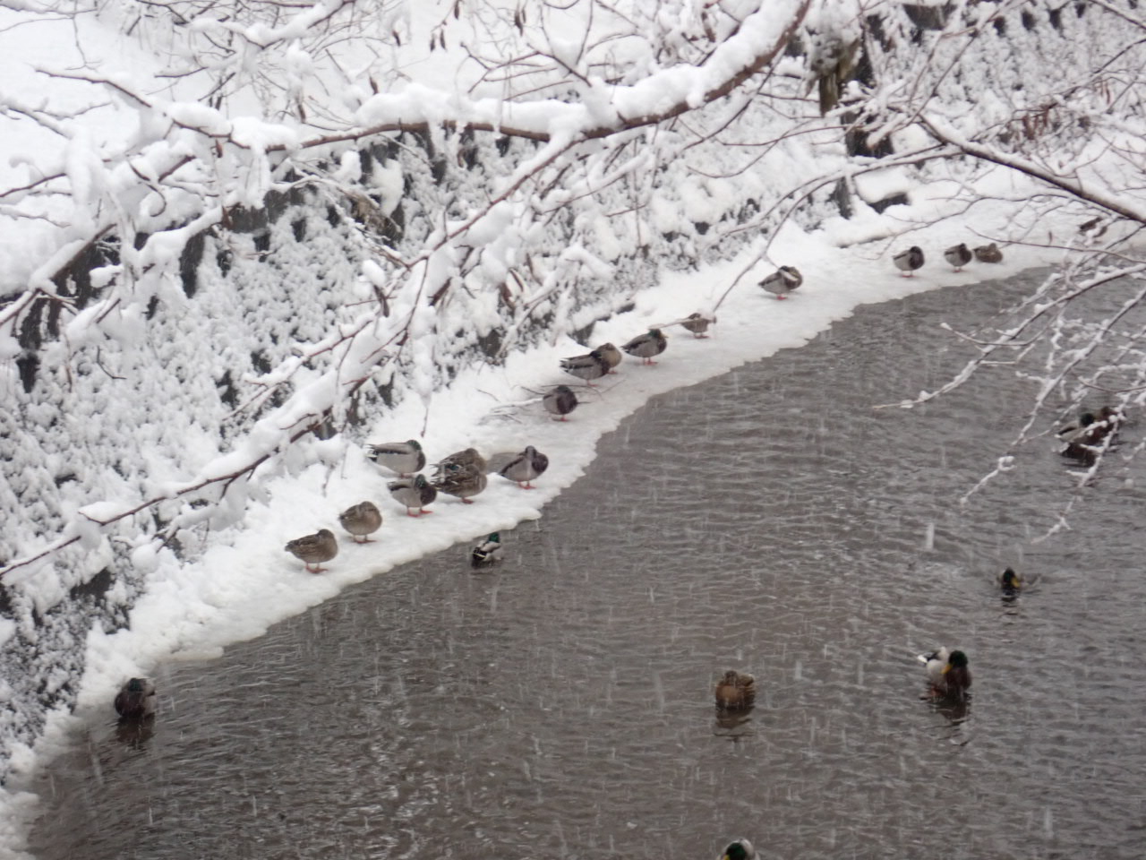 並んでいました。凍った部分に並ぶ姿は可愛らしかったです。