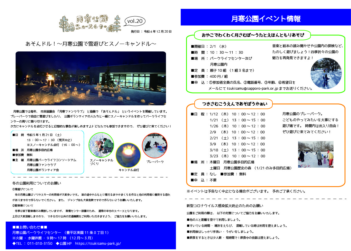 いつも月寒公園をご利用いただきありがとうございます。
