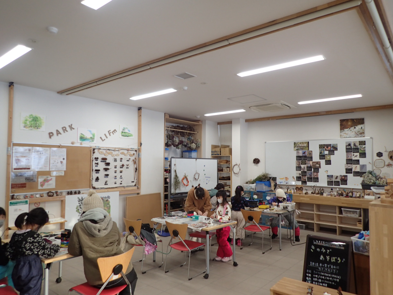 寒い日が続いていますね。月寒公園の多目的広場は毎日そり遊びやスキーの練習で賑わっています。たくさん雪遊びをした後は、パークライフセンターの休憩スペースの薪ストーブで暖まり、楽しく過ごされるご家族がたくさんきています。7日土曜日と15日日曜日は、きのみであそぼうの開催日。雪遊びの後に赤いほっぺたの子ども達がたくさん参加してくれました。今月は「木の実で自由に作ってみよう!」木の実を使って、動物や乗り物、可愛い自由な作品のご紹介です!