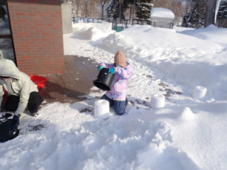 お散歩に出かけましょう!小さな雪だるまを作ったり、元気に雪合戦したり、