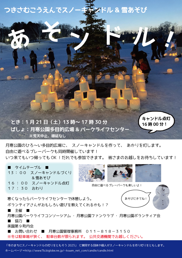 21日日曜日、「あそンドル!月寒公園でスノーキャンドルと雪遊び」を開催しました。