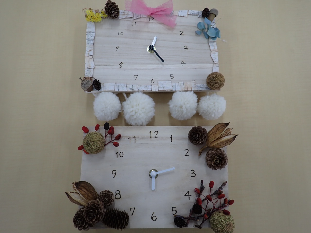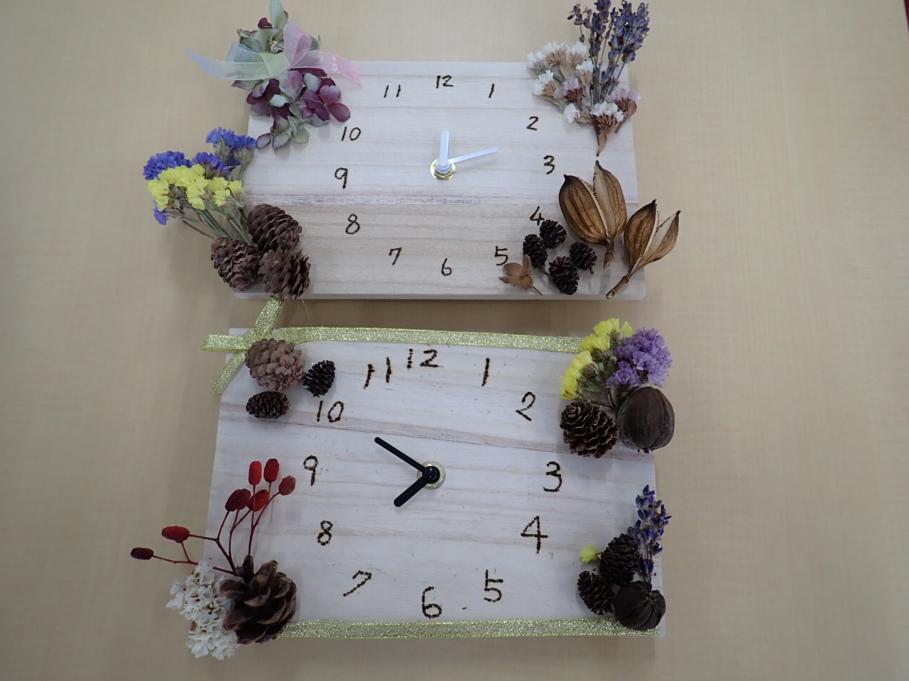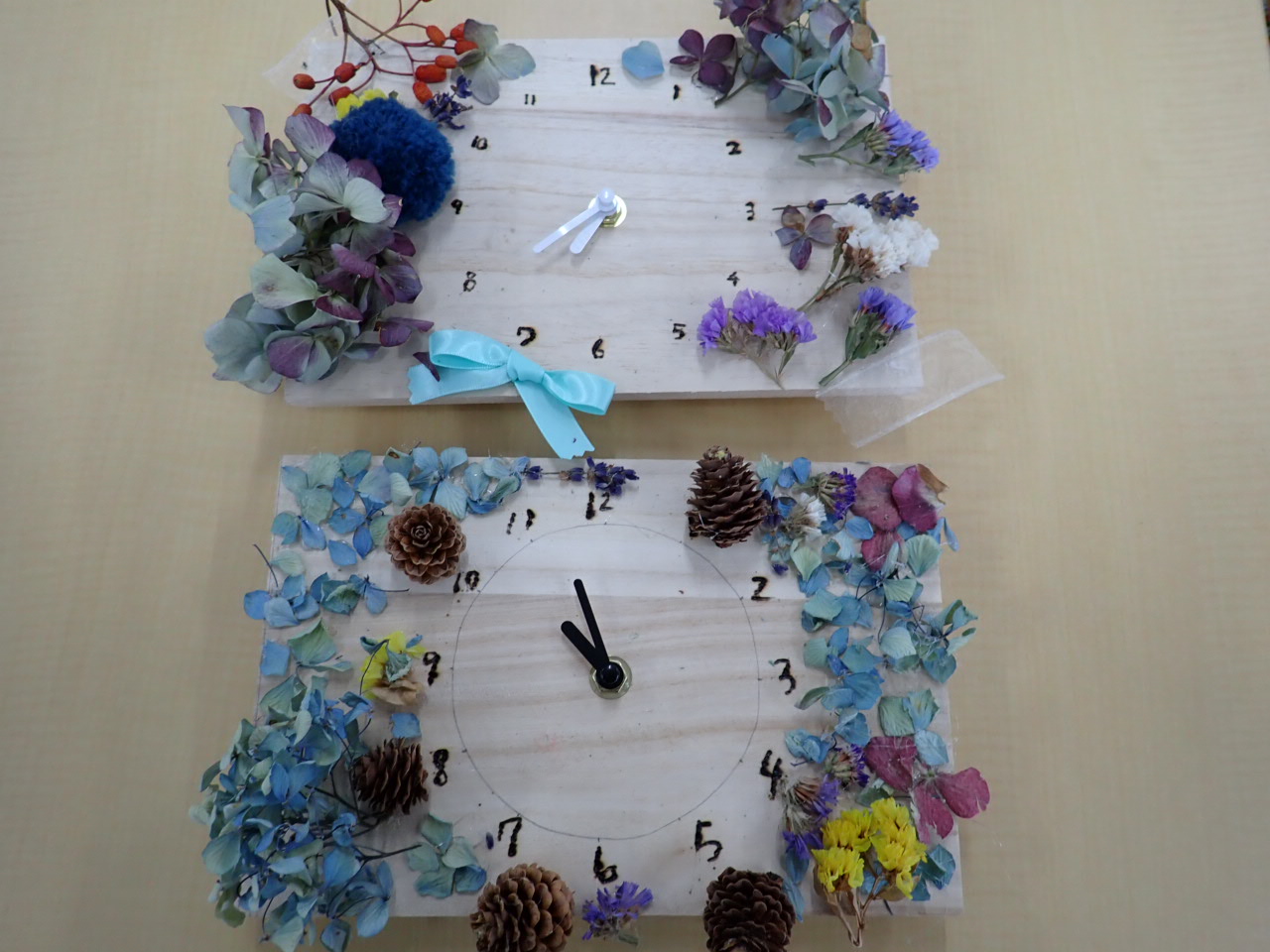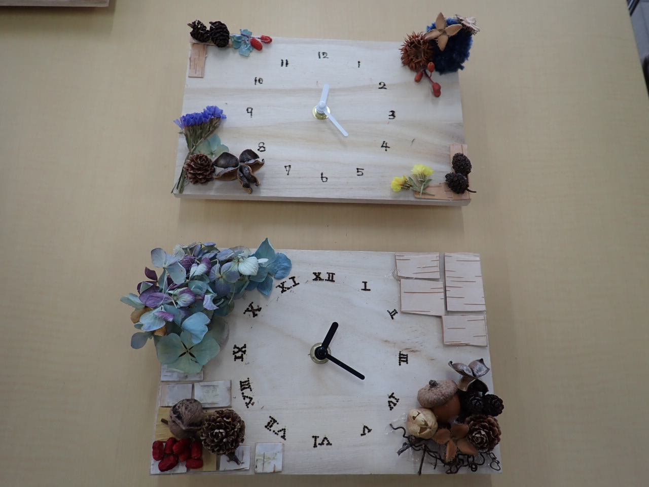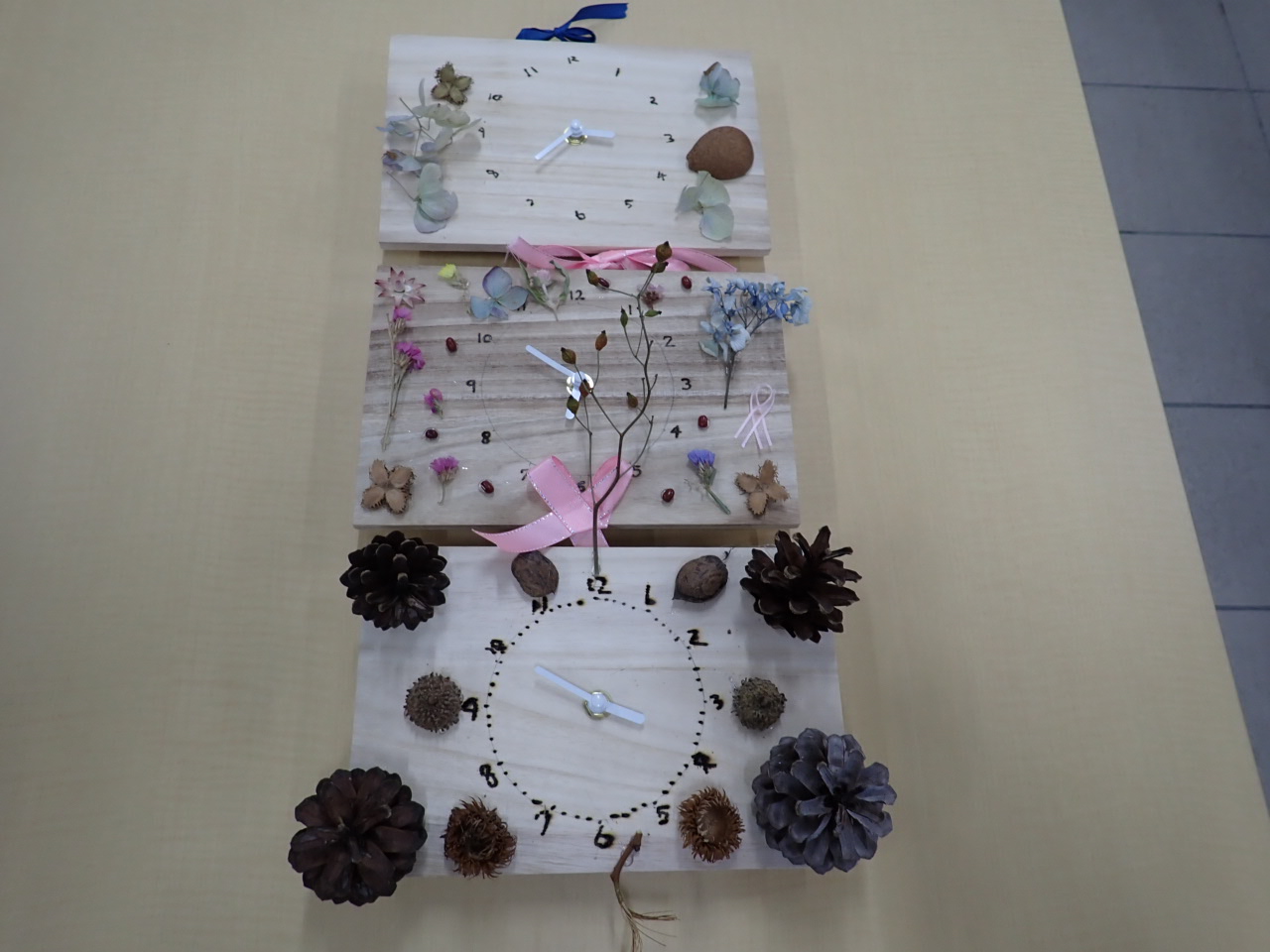 飾ります。オリジナルの時計を作りにきてくださいね。