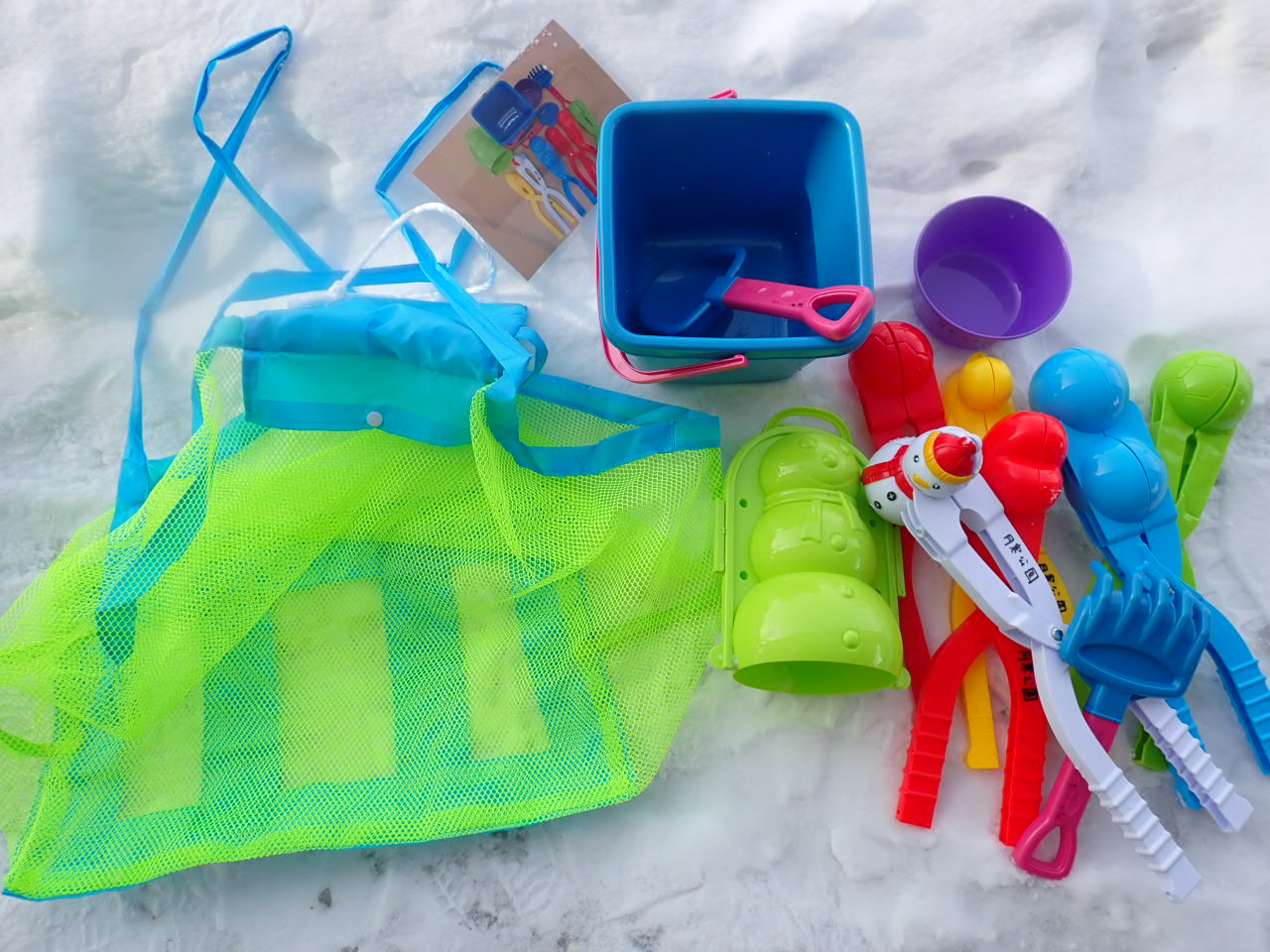 カバンにたくさんの雪遊び道具をつめこんだ、このセット。小さなお子さまにと思って提供を