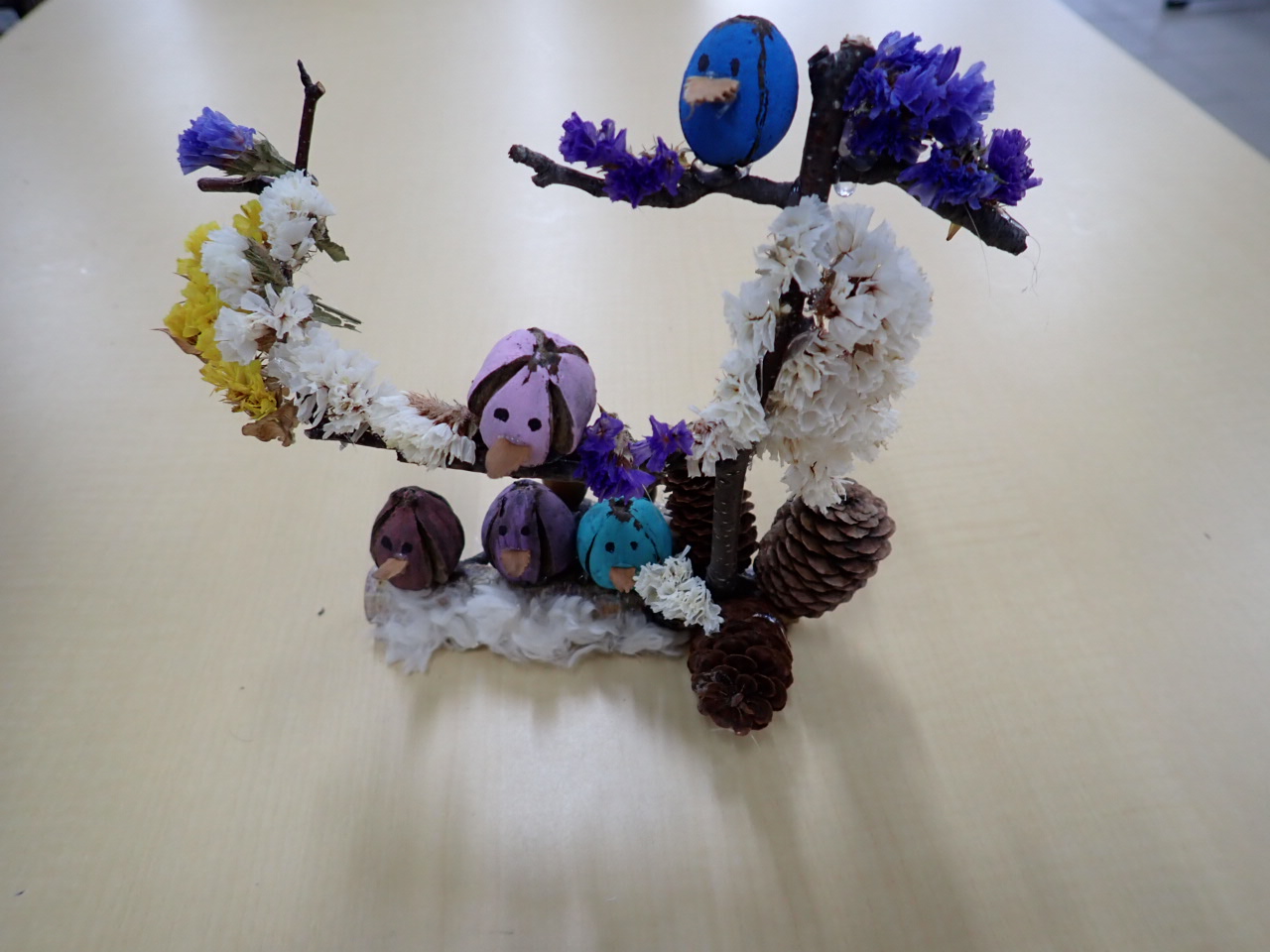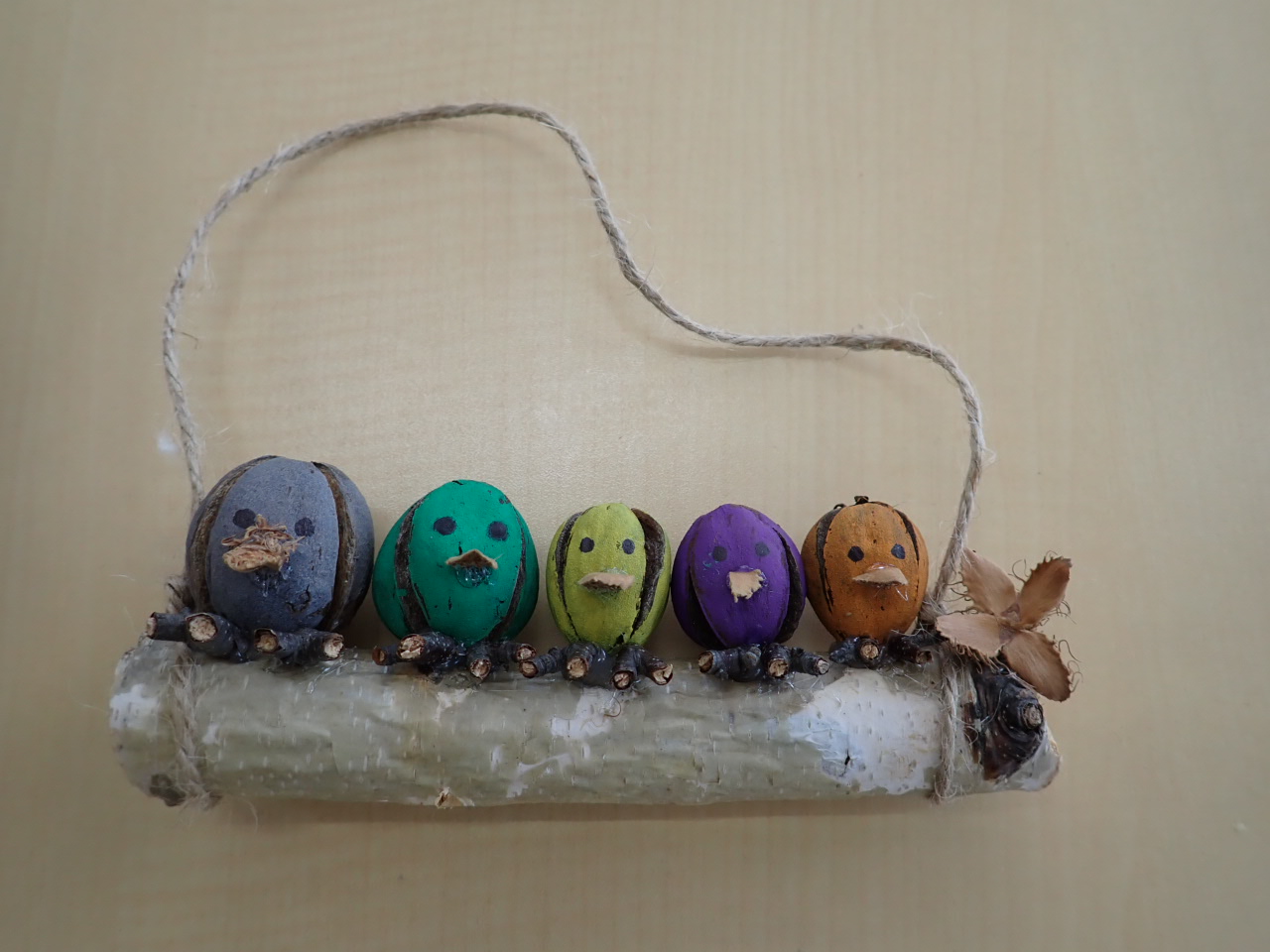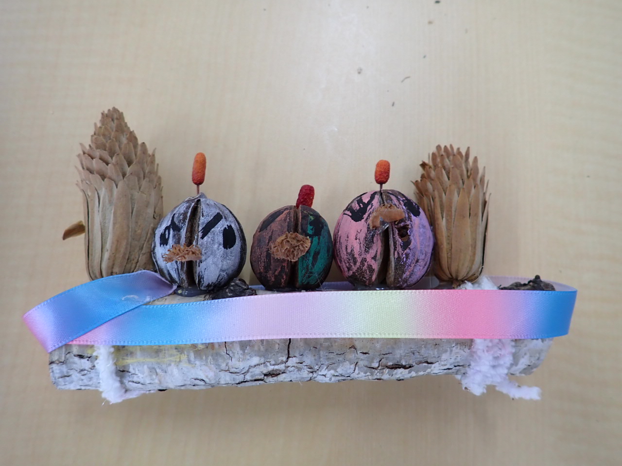 一安心でした。ヒッコリーの実で小鳥をつくったり、オリジナルの妖精をつくったり。