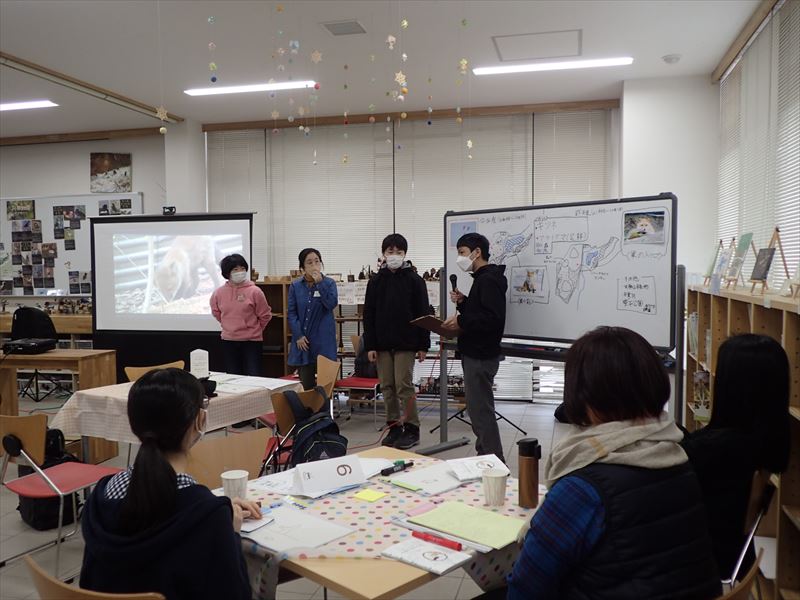 月寒公園で定期的に、野鳥や野生動物を調査している中学生2人からも、アライグマやキツネの情報を発表してもらいました。