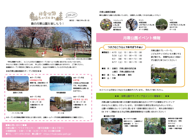 今年は雪解けが早いため、遊具の開放時期に関するお問い合わせを多くいただいております。