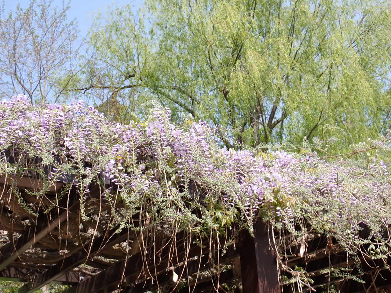 お散歩にこられて、藤棚の下のベンチでゆっくり過ごされるのもいいですね。