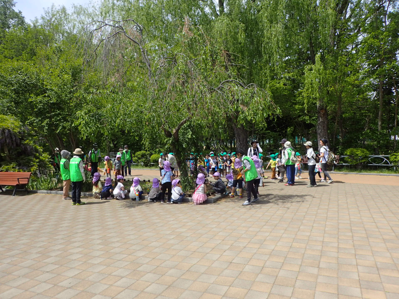 5月26日金曜日、幌南学園幼稚園の年長さんと月寒公園ボランティア会で