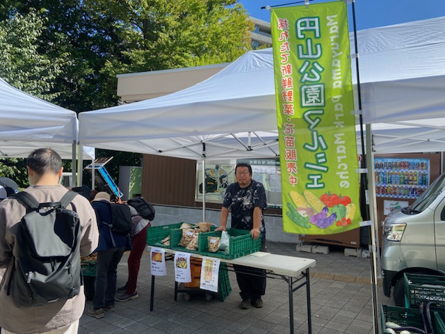 今日の円山公園マルシェでも、じゃがいもやにんじん、長ネギやかぼちゃなど、たくさんの野菜を販売していました。