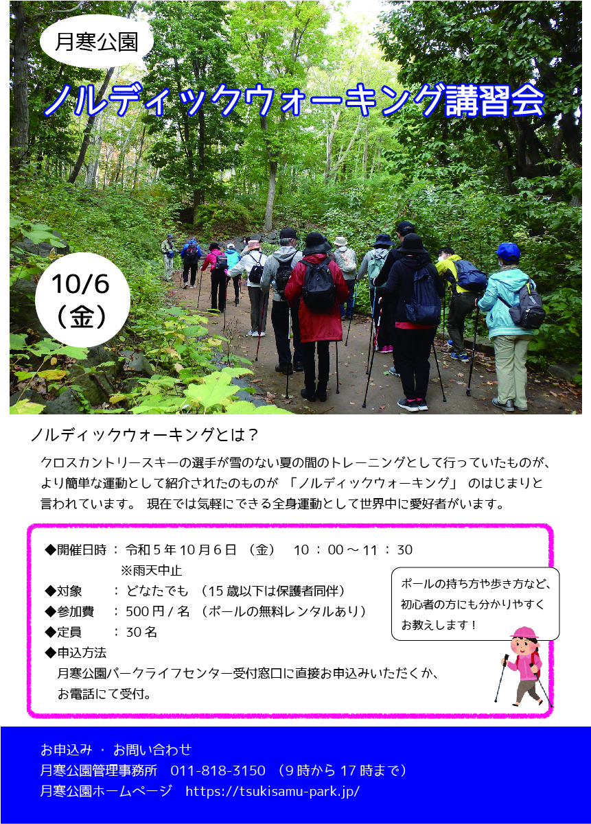 申込 月寒公園パークライフセンターの窓口か、電話(011-818-3150)または、