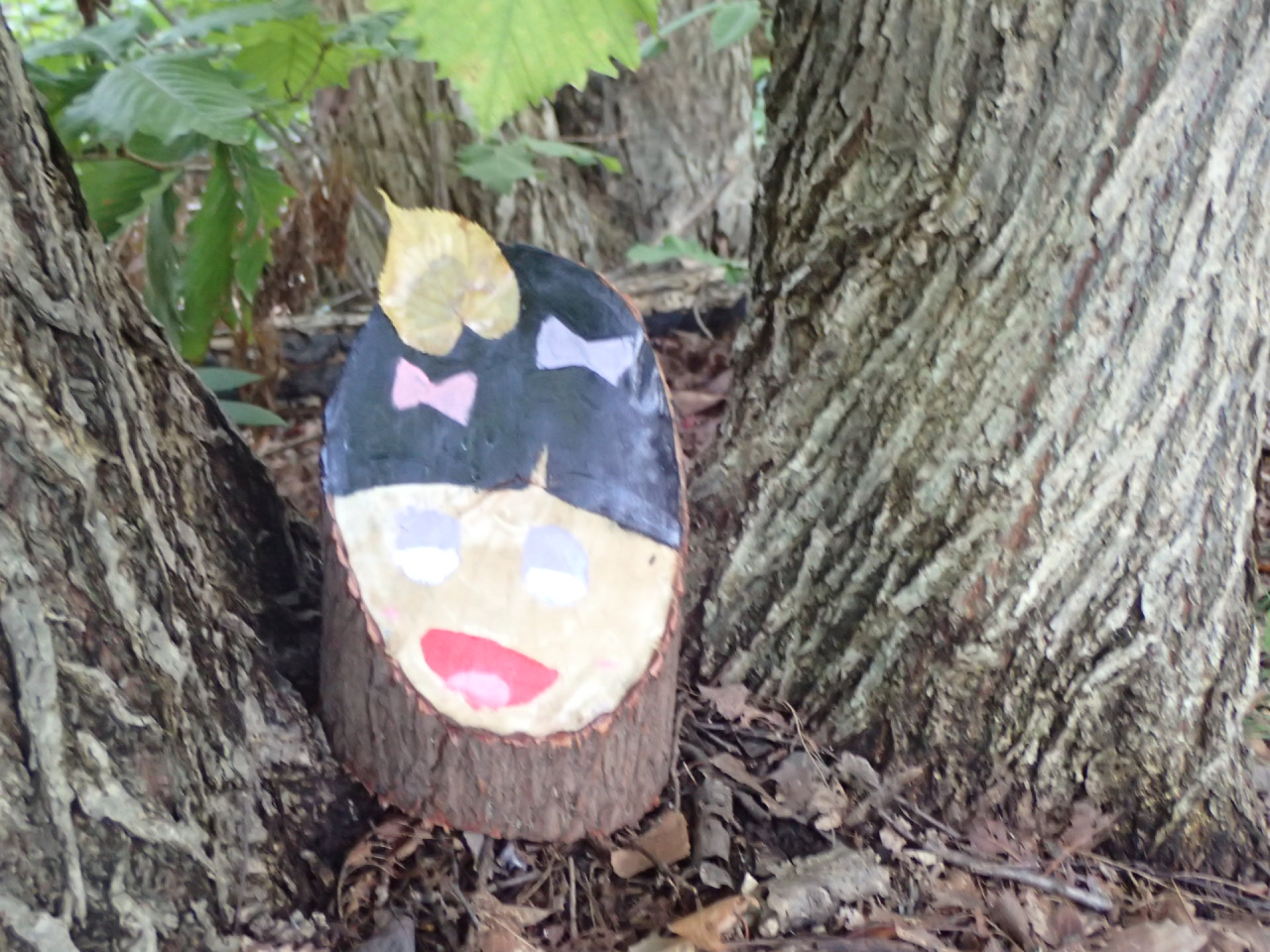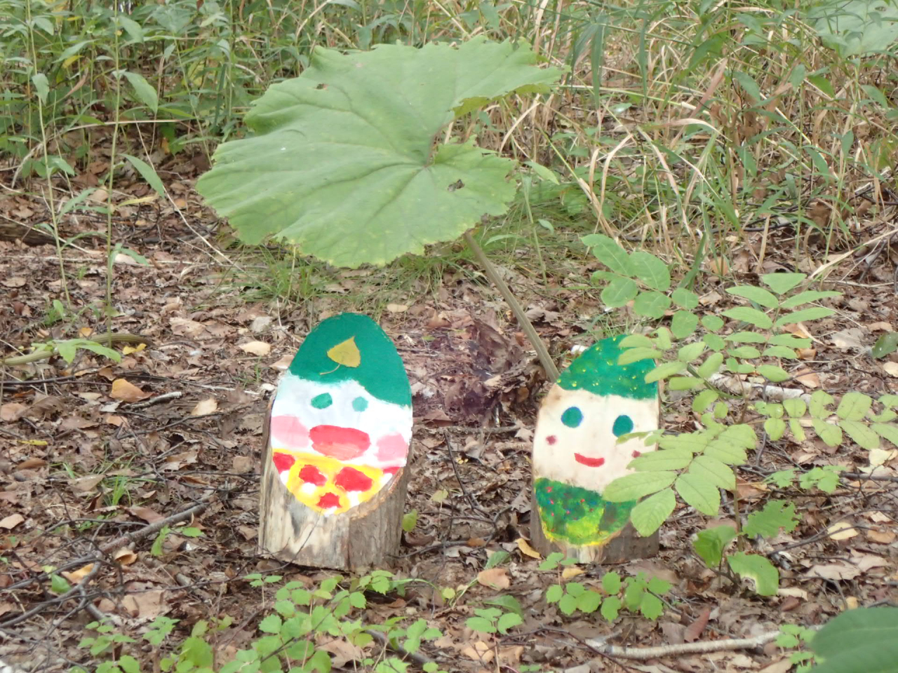 作った小人たちを、散策の森(ロング滑り台とテニスコートの間の森)に、11月末まで展示中です。