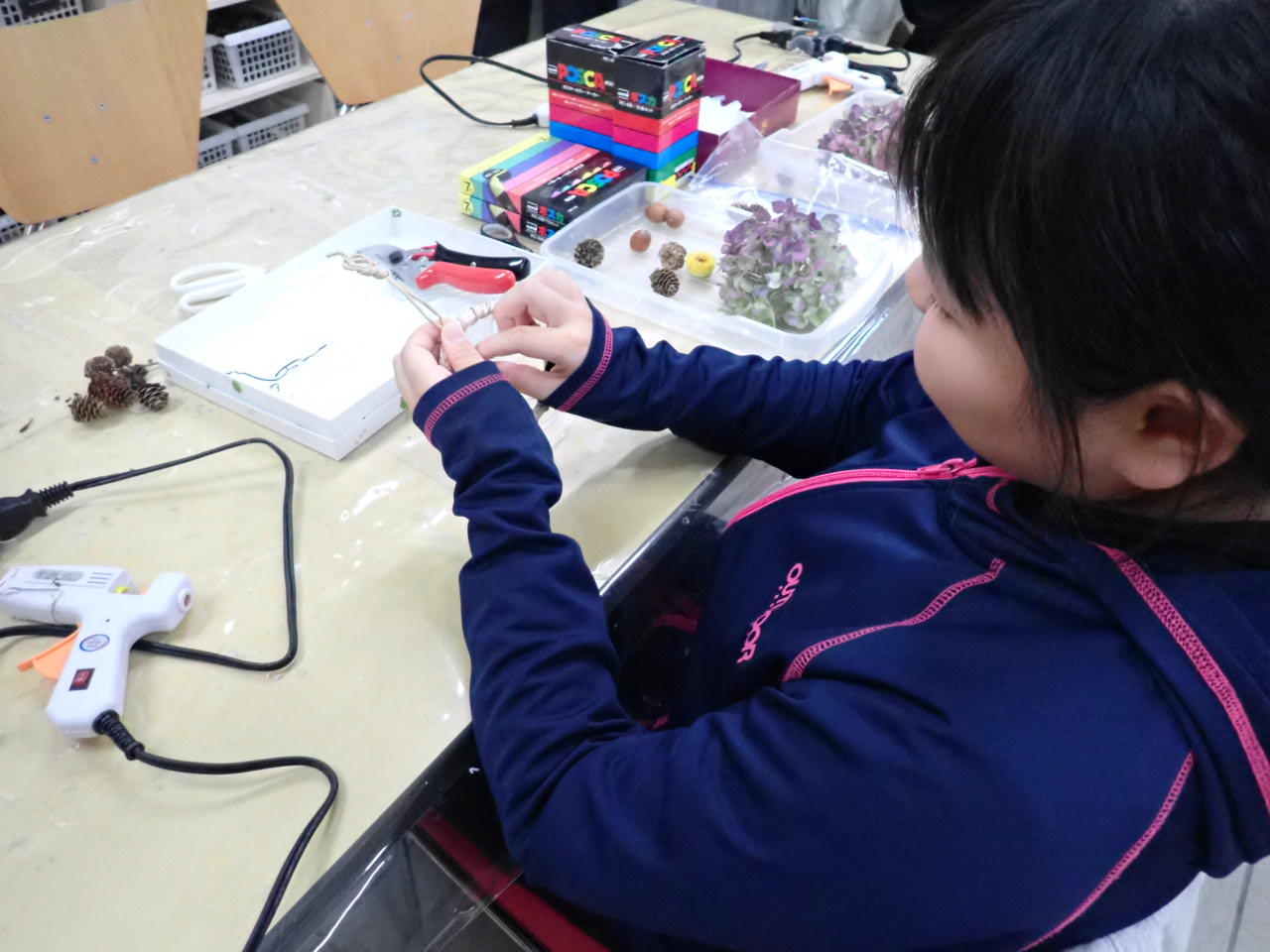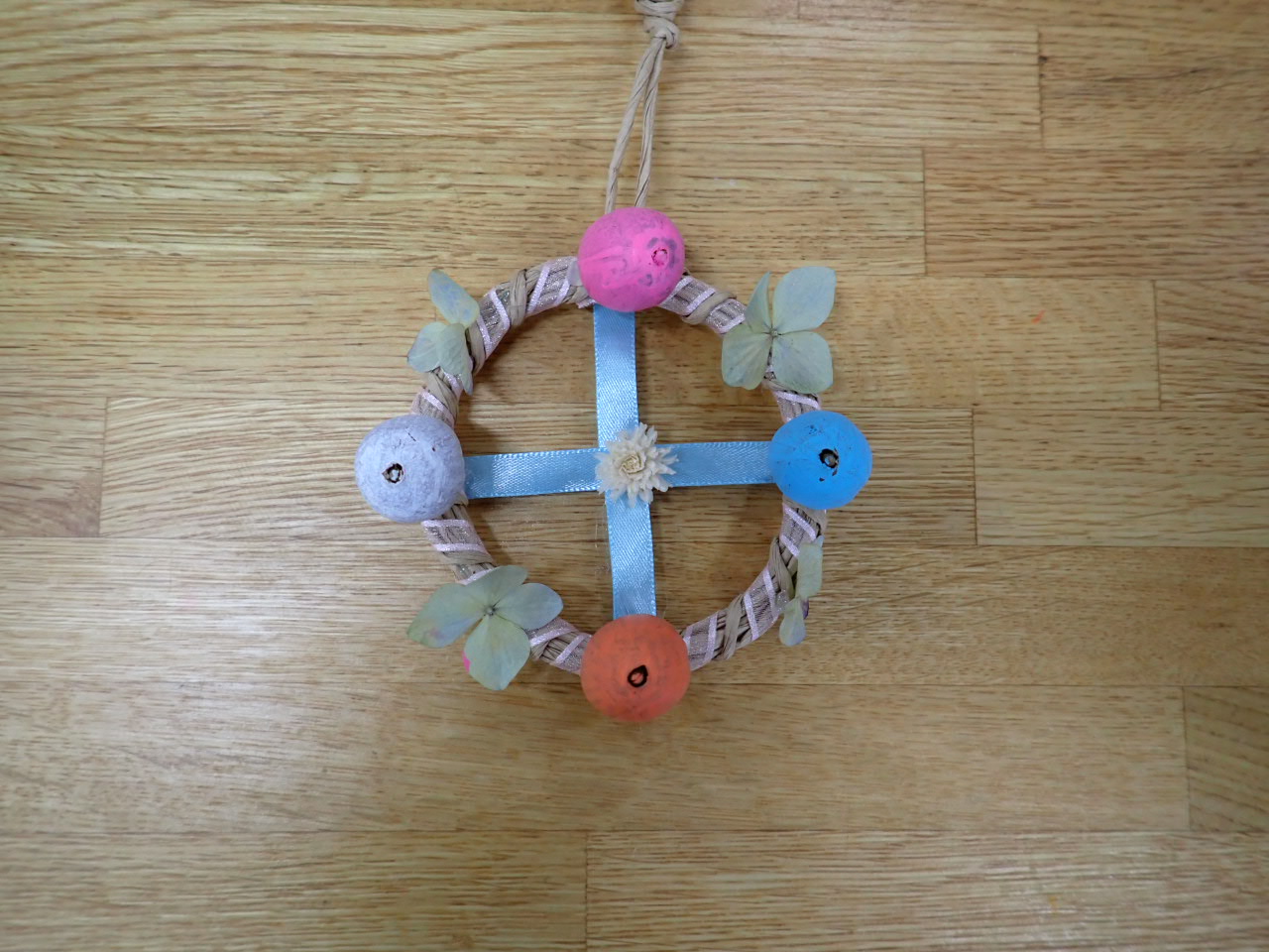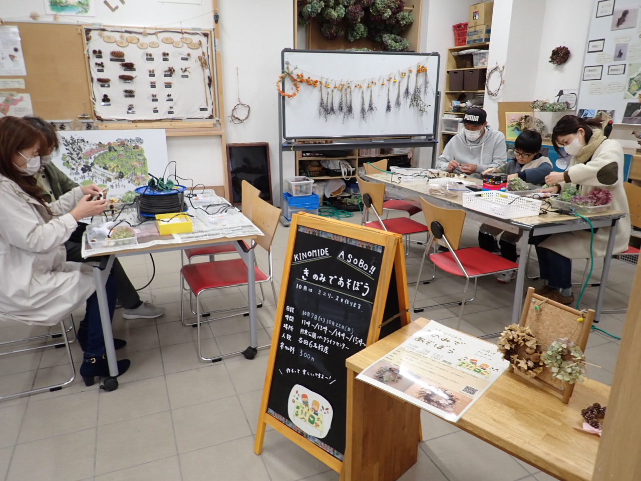ミニリースは大人の参加者の方が多く「無心になって作るのはいいね」と楽しい時間を