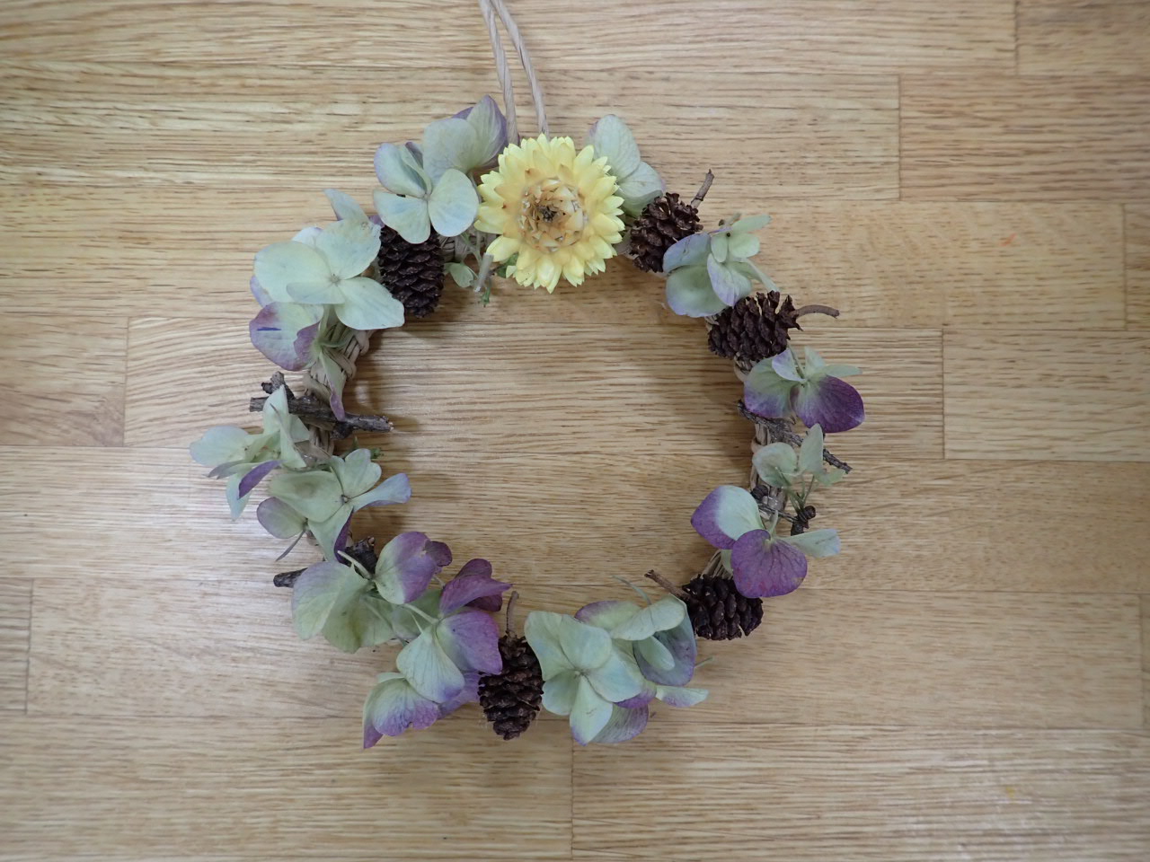 みなさんアジサイやヘリクリサムのお花を上手に使っているのが印象的でした。