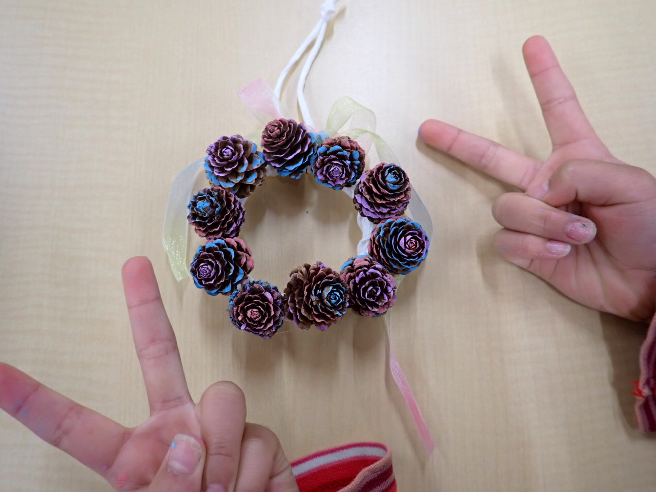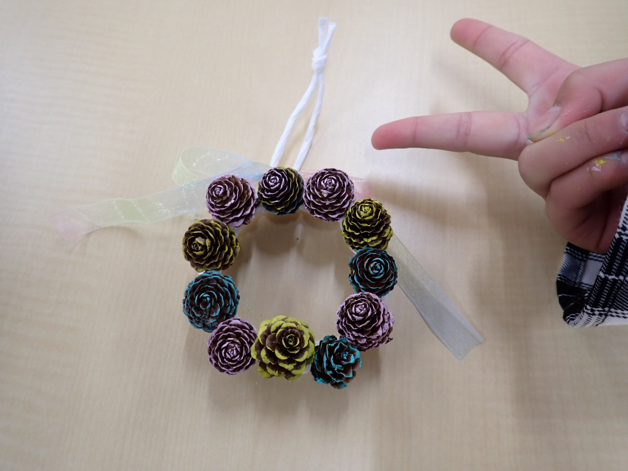 たくさんの松ぼっくりを丁寧に色塗りしてくれました。