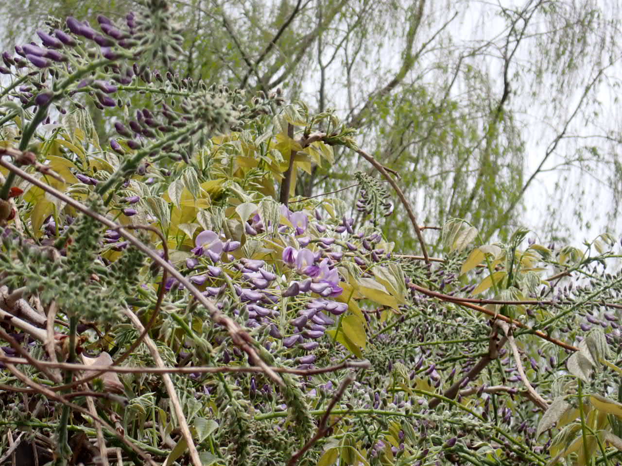 ボート池前にある藤棚の藤の花が開花しました。