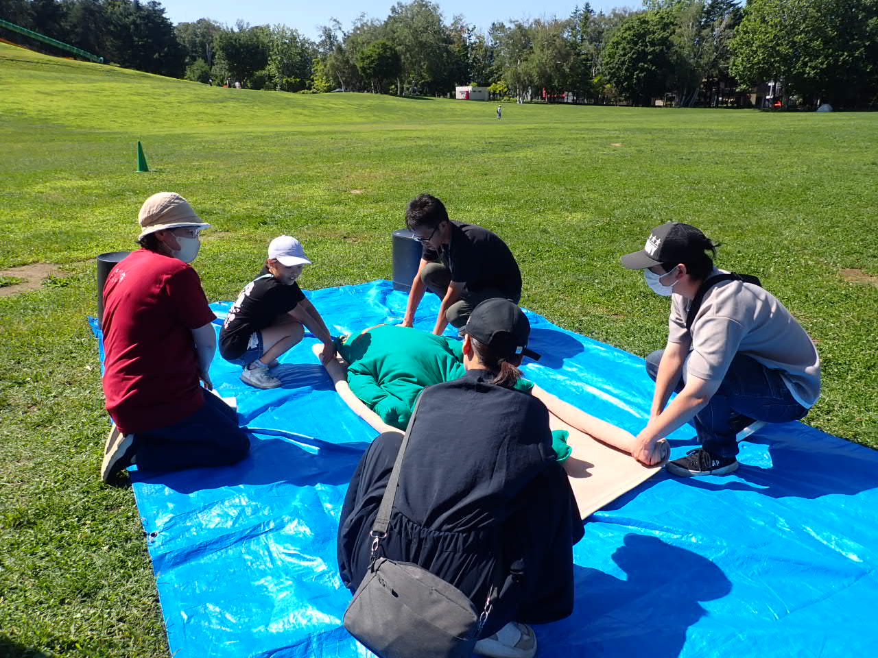 こちらも同じく「カエルキャラバン」のプログラムで、「毛布で担架タイムトライアル」です。