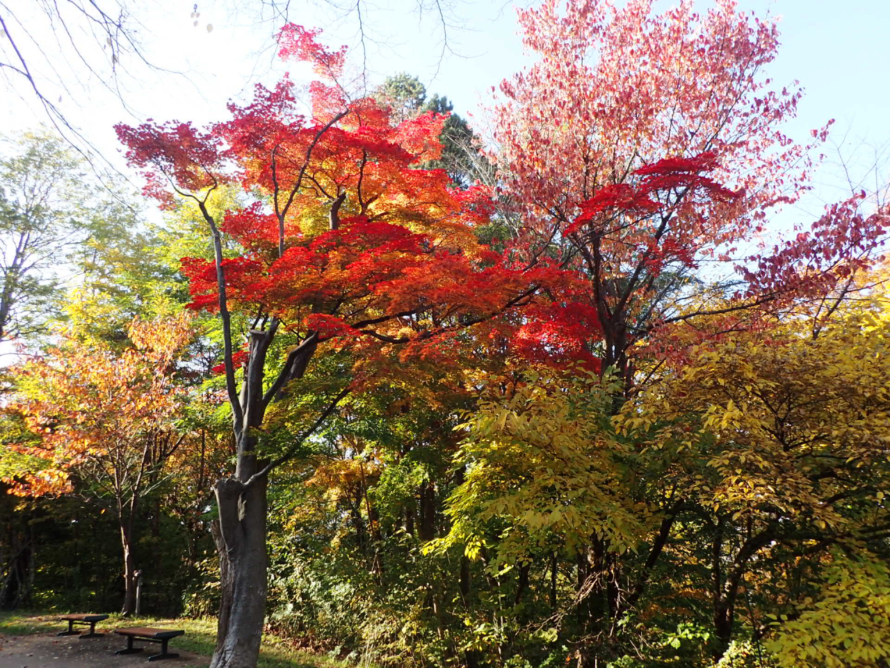 カエデ類の赤や黄色の色づきが美しいですね。