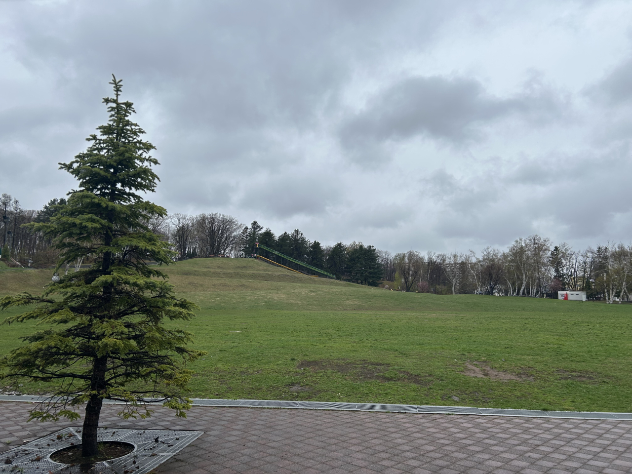 札幌市内の積雪は0㎝に近づいているようですが、月寒公園はまだまだ雪の中。